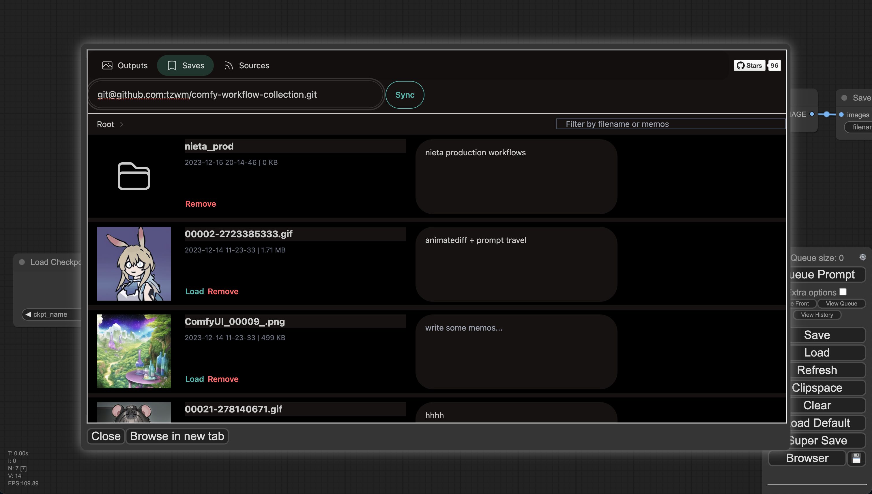 🧐 ComfyUI 浏览器是一个用于查看、管理和同步ComfyUI输出文件和工作流的工具,支持收藏夹功能,远程Git同步,以及社区工作流仓库订阅。