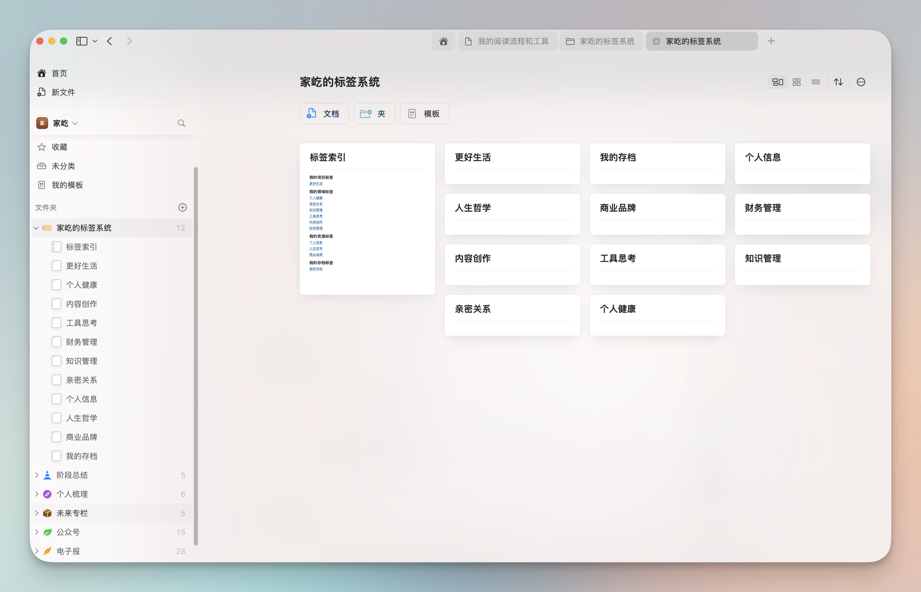 目前我在 Craft 的文档,是以我创作的平台来分类建立文件夹的,但是仅有文件夹还不够,我希望能在 Craft 里也和 flomo 一样,能用上 PARA 的笔记组织方法,所以要想办法用上标签功能。