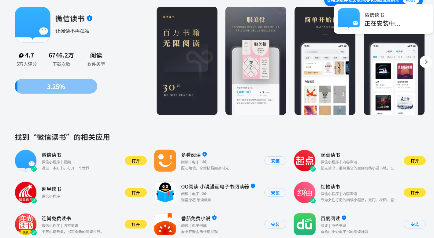 2 在「应用宝」里面下载微信读书