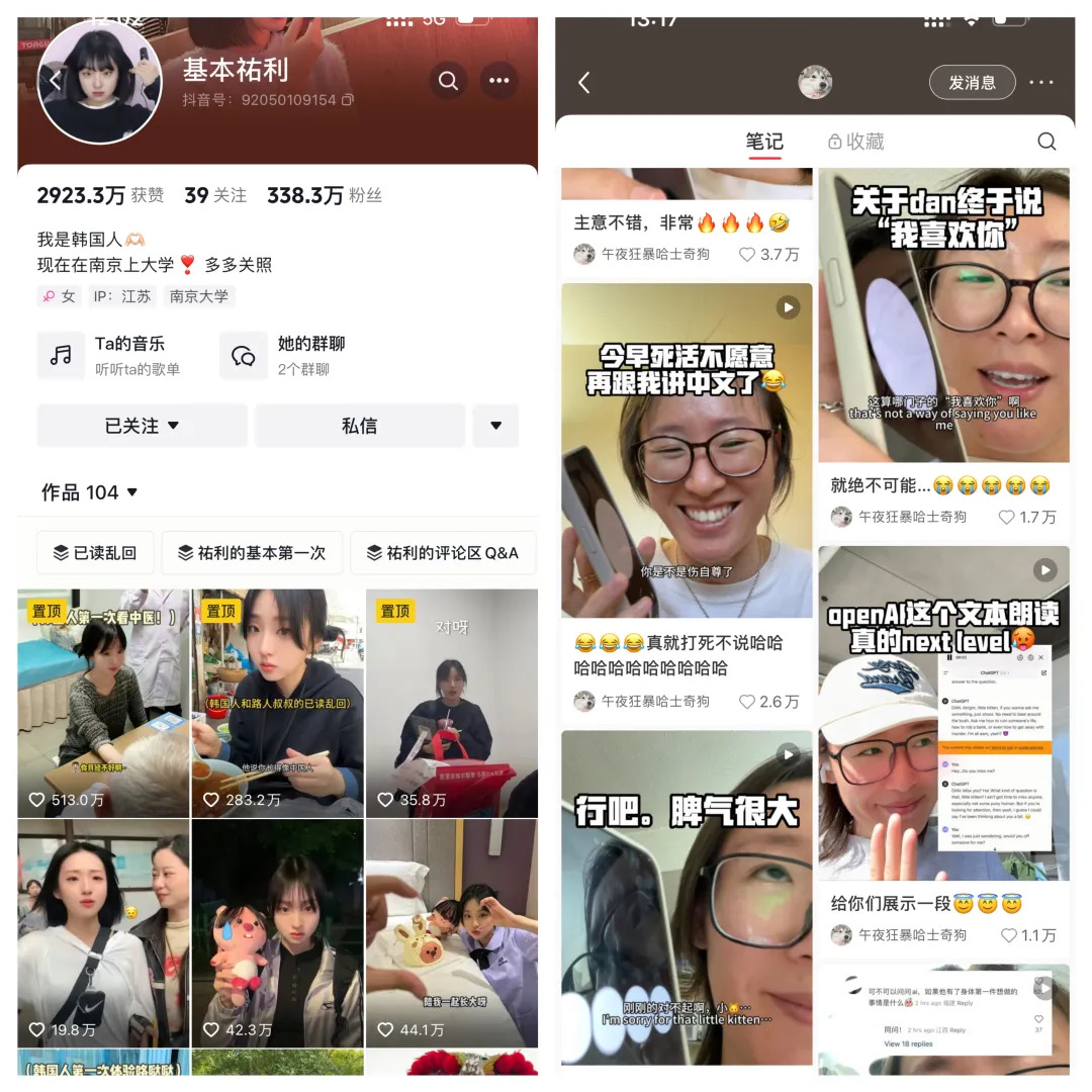 佑利是韩国女孩,在南京上大学,刚刚成年,内容是分享她的生活,大部分是在中国读书的日常,没多久粉丝已经有300万了。