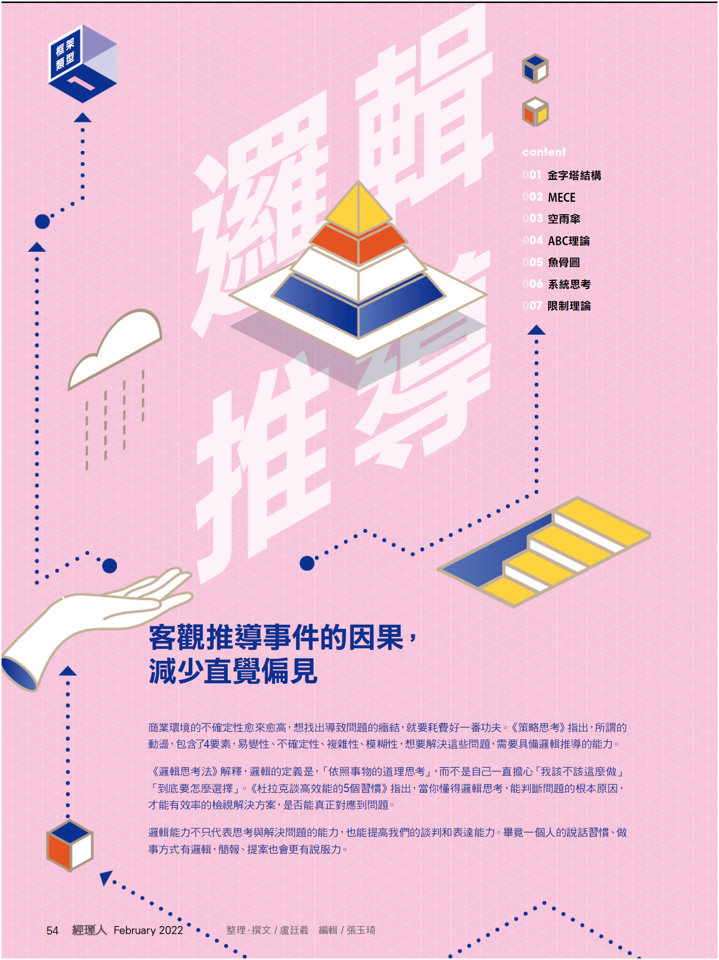 金字塔结构💎、MECE🌈、空雨伞☔、ABC理论🔁、鱼骨图🐟、系统思考🧠、限制理论🍊