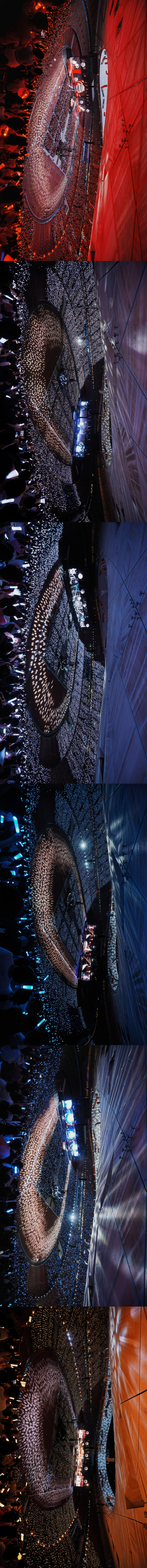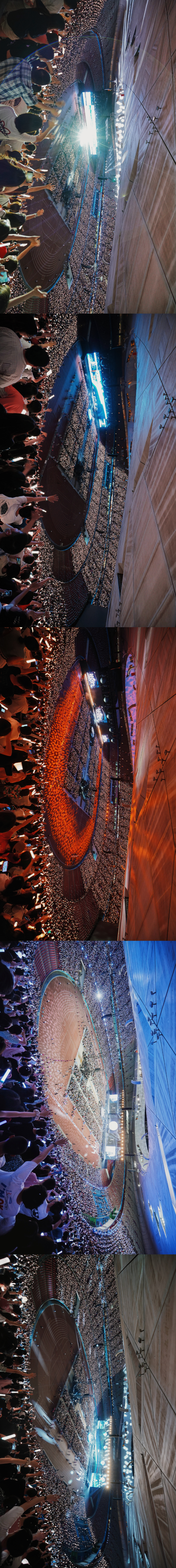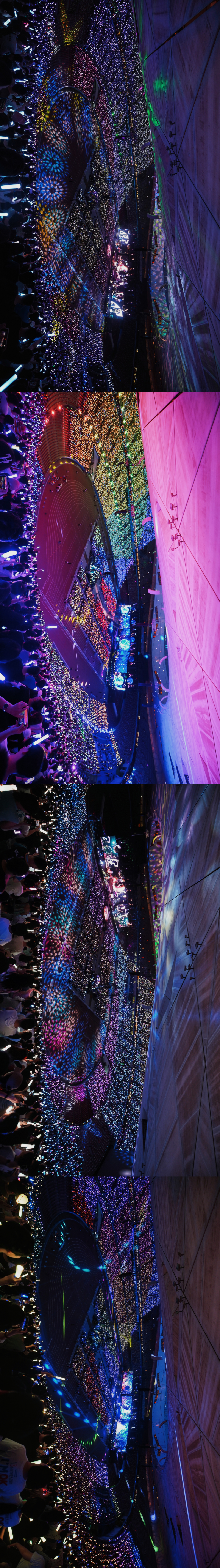 不用担心看不到听不到,从第一场鸟巢开始他们就是以旗舰场来准备的演唱会硬件,而且唯有在山顶才能看到旗舰级的灯光全貌,才能感受到内场和看台,舞台和控台,跑道和屋顶,视讯灯光和荧光棒场控是怎么一体联动让最后一排的观众都能沉浸在演唱会氛围中。