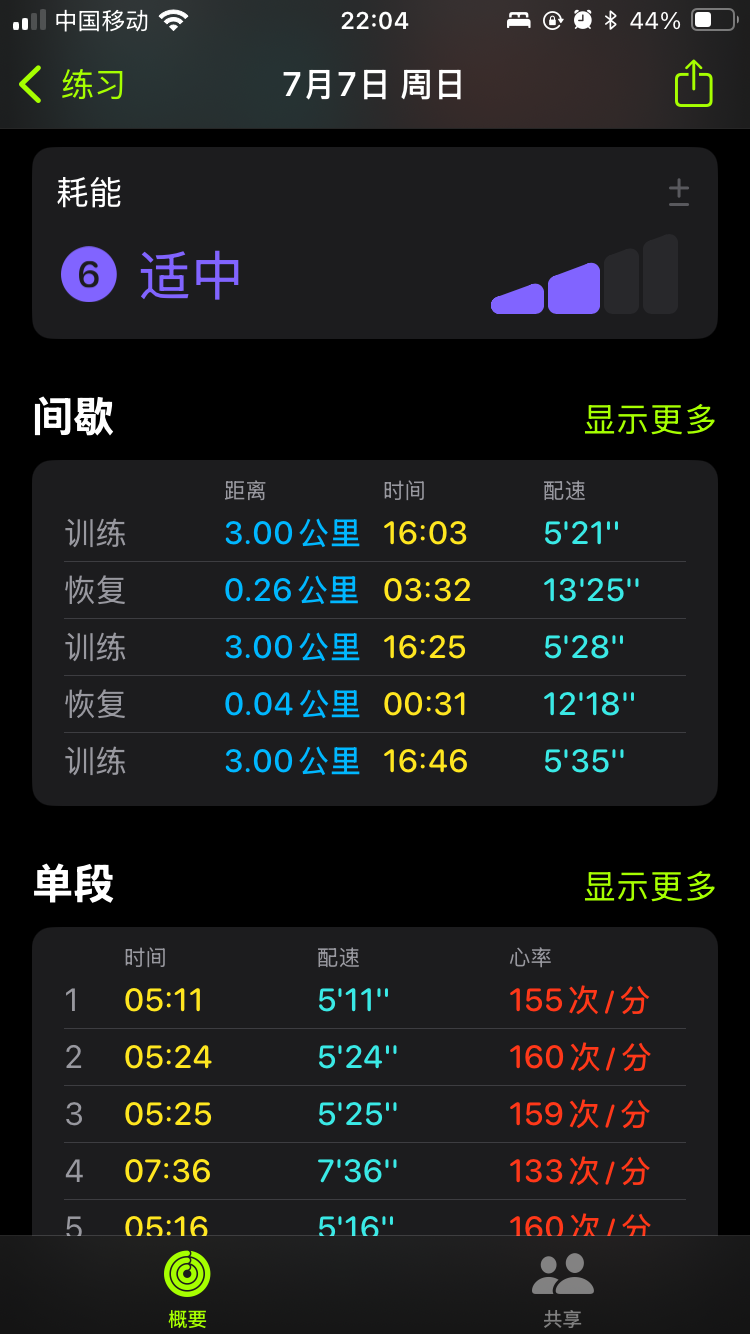 目标是跑3✖️3公里(小于 5 分30秒),最后一个三公里还是没有完成。