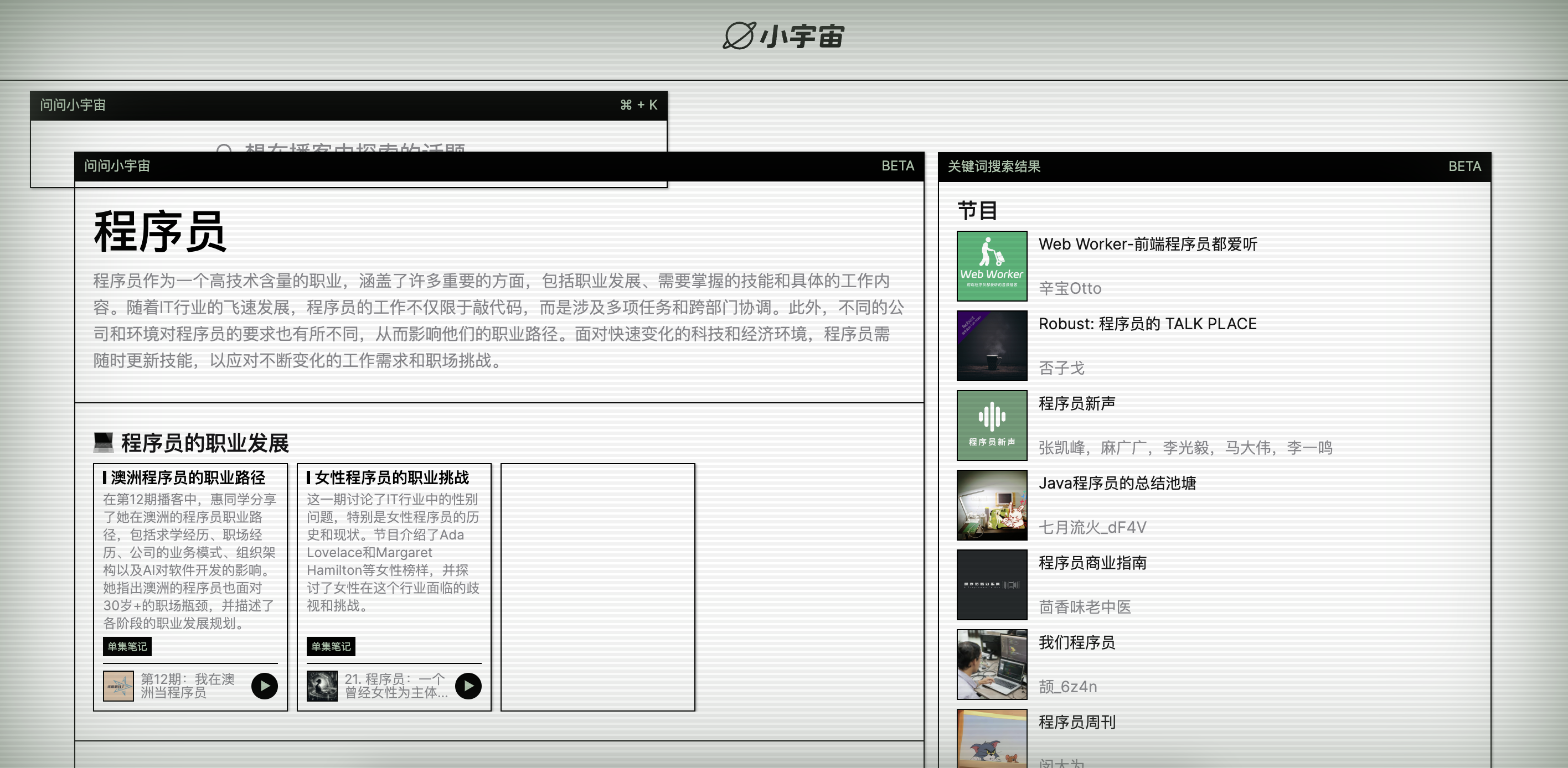 最近看小宇宙发布了一个问问小宇宙的AI应用,不过网页风格😂,花了5分钟开发了一个浏览器插件换肤已经提交了待审核,审核完之后发出来下载地址,前两张图是问问小宇宙的原始图,后两张是换肤之后的