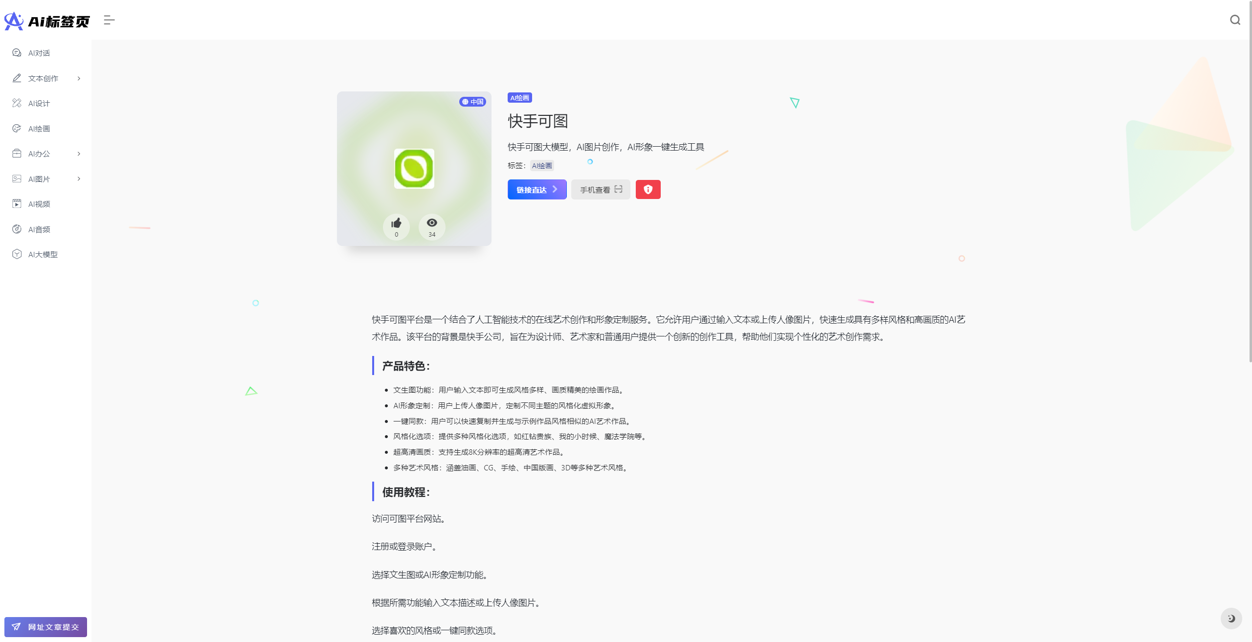 一站式的AI工具导航站,汇聚了多元化的智能应用。从智能对话到学术论文辅助,从公文撰写助手到创意写作伙伴,更有AI设计、绘画、PPT制作等艺术与技术交融的工具。
