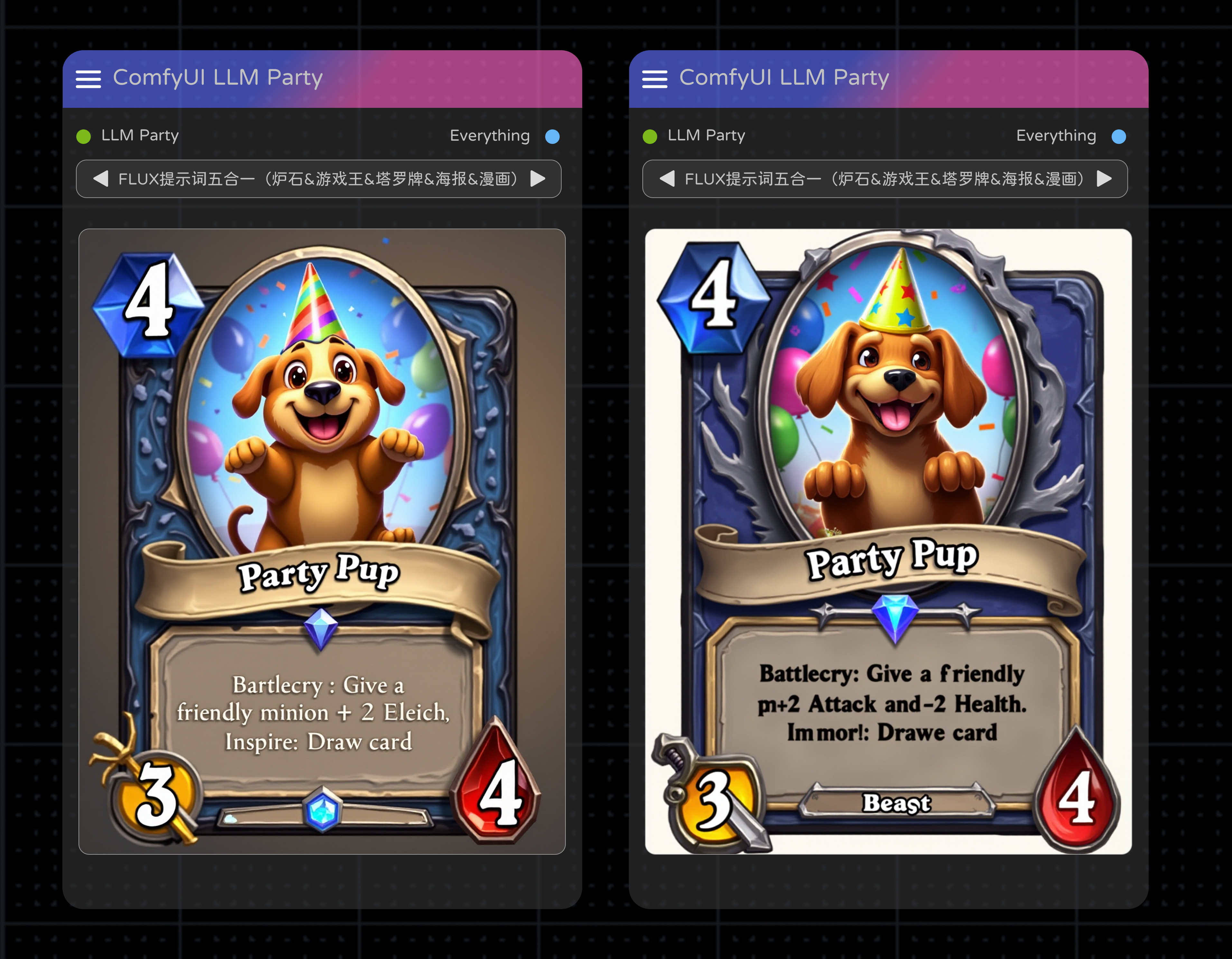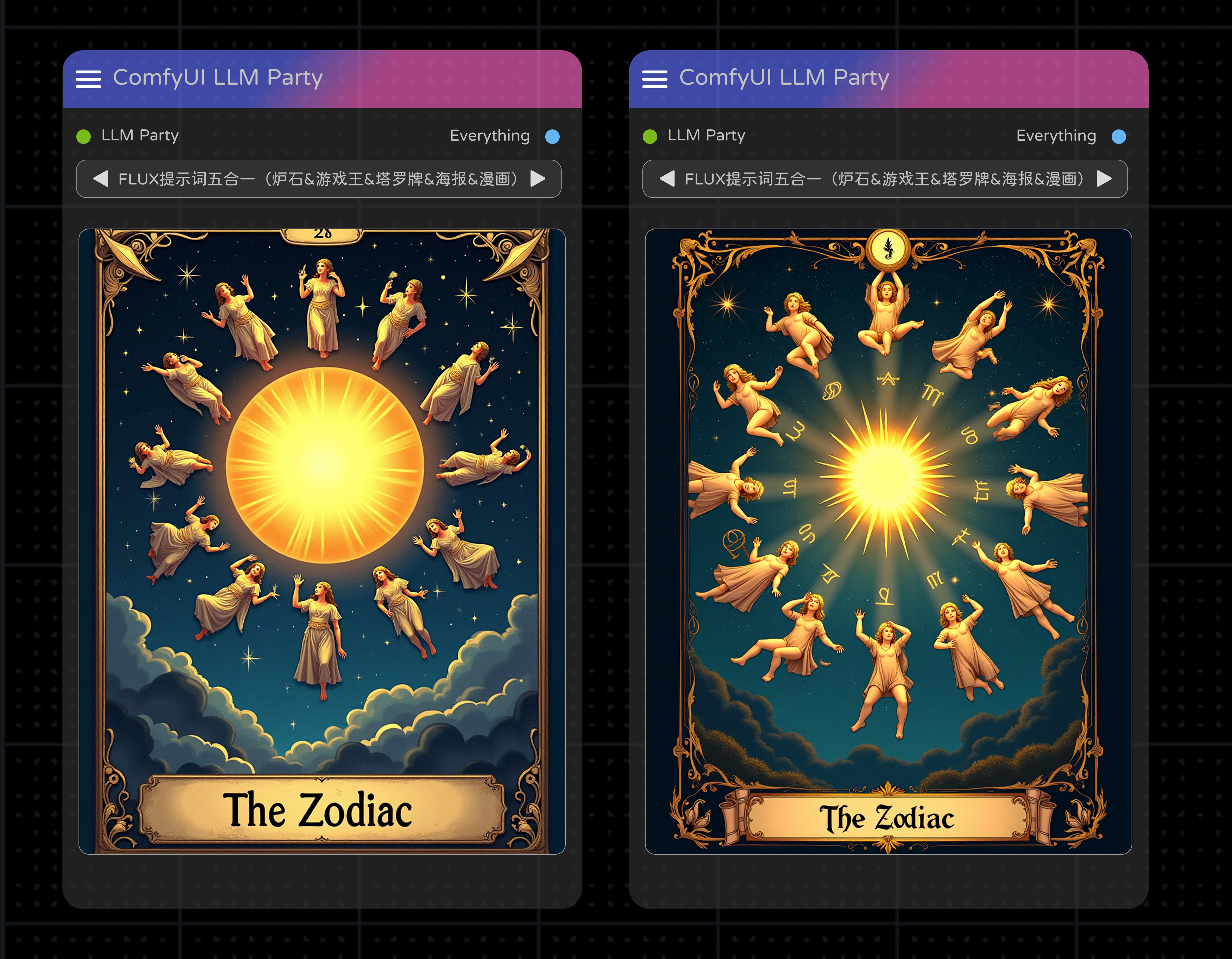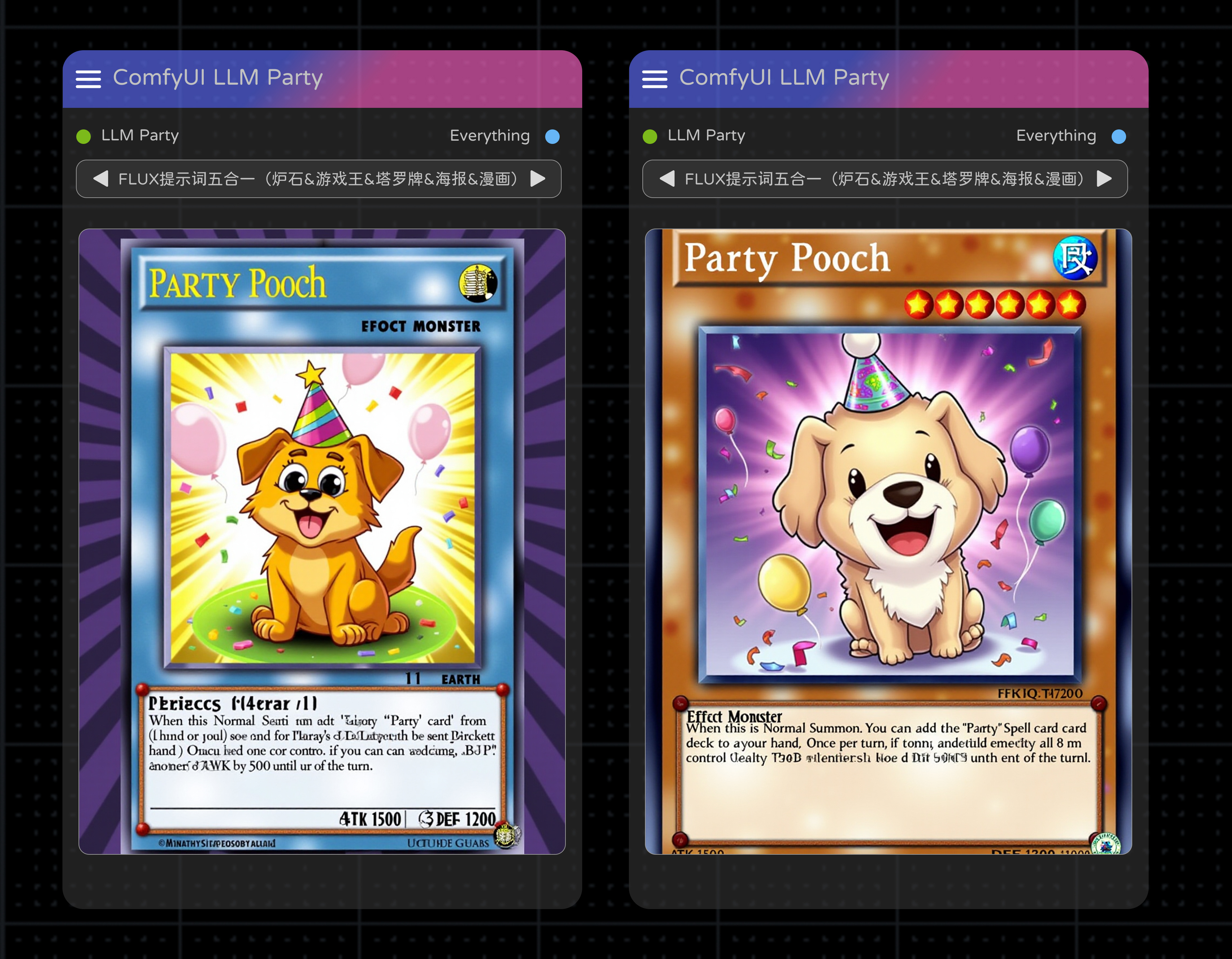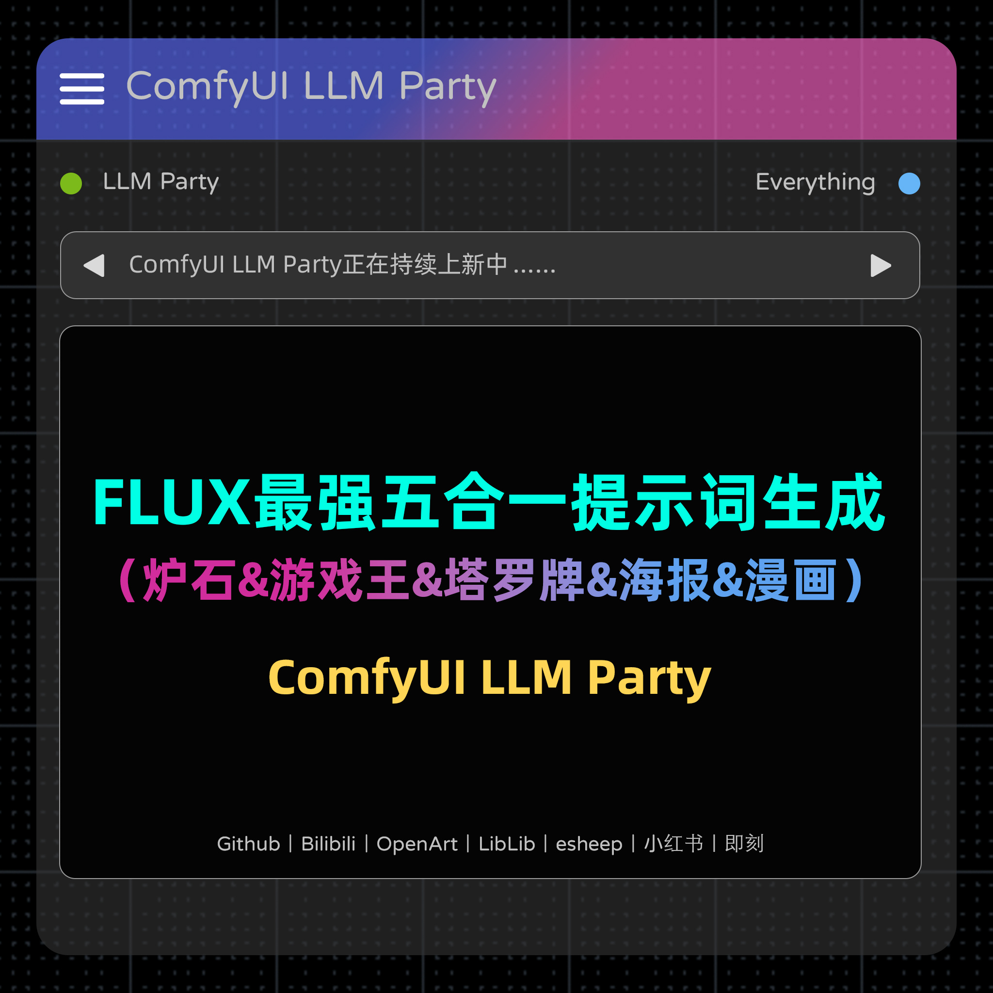 FLUX提示词五合一(炉石、游戏王、塔罗牌、海报、漫画)一键生成 by LLM Party | ComfyUI Workflow