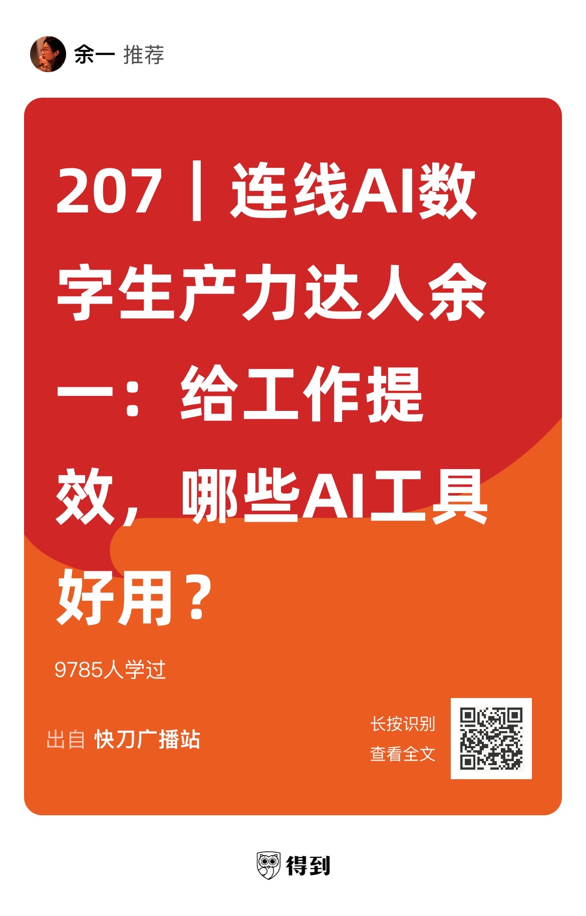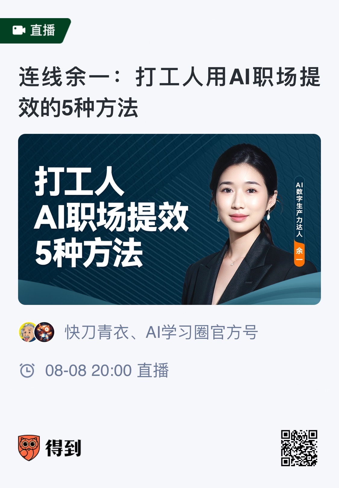 好几个人问我直播回放在哪里:AI 学习圈的直播回放,还有快刀广播站的精华版,刀哥的视频号都可以。