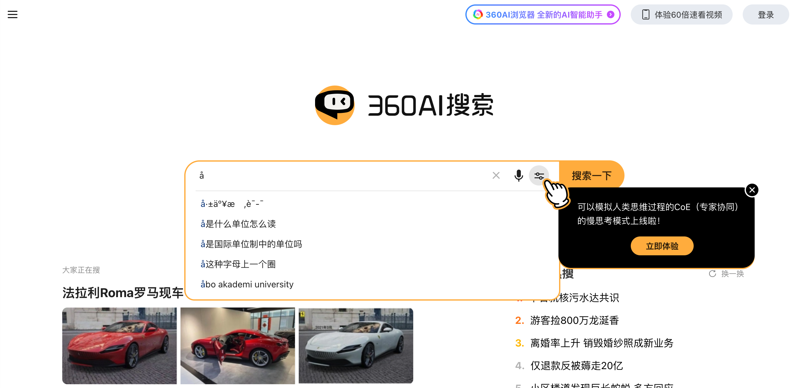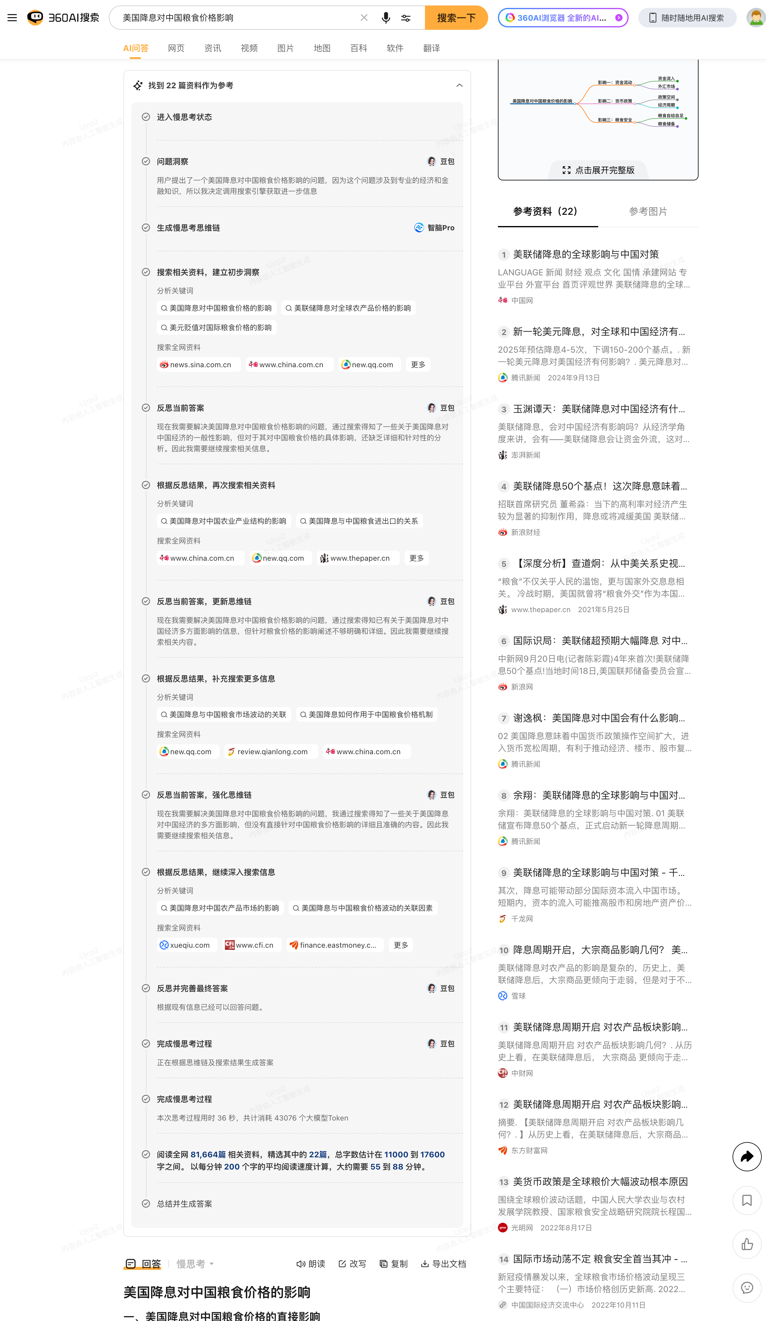 刚才也看到了360上线了慢思考的AI搜索版本