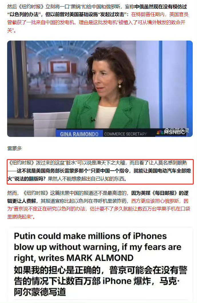 美商务部长雷蒙多也曾公开说,“只要中国一个指令,美国电动汽车就会全部熄火”。