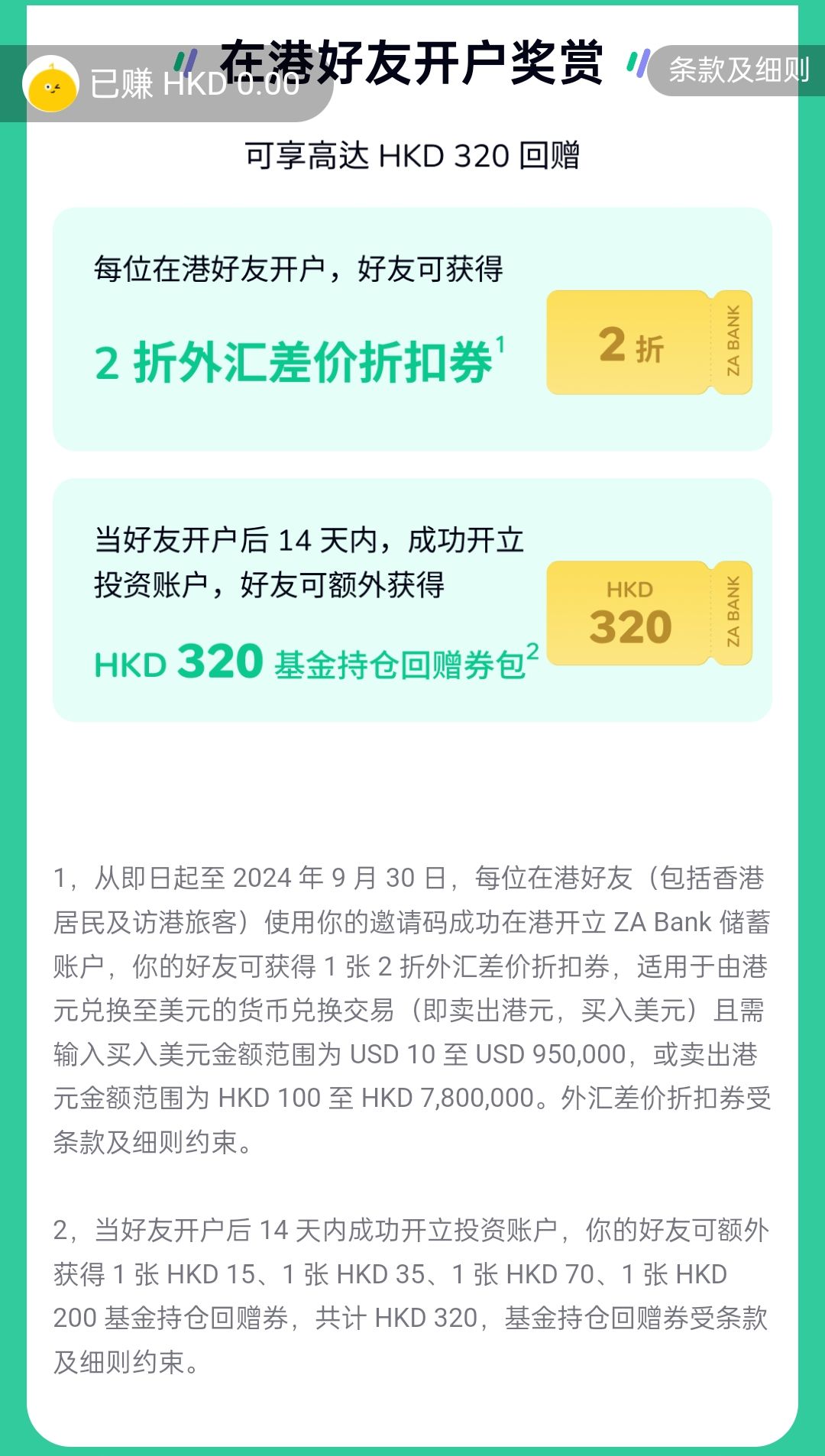 邀请人和被邀请还有至少320港币基金抵现券,我的邀请码:T86674