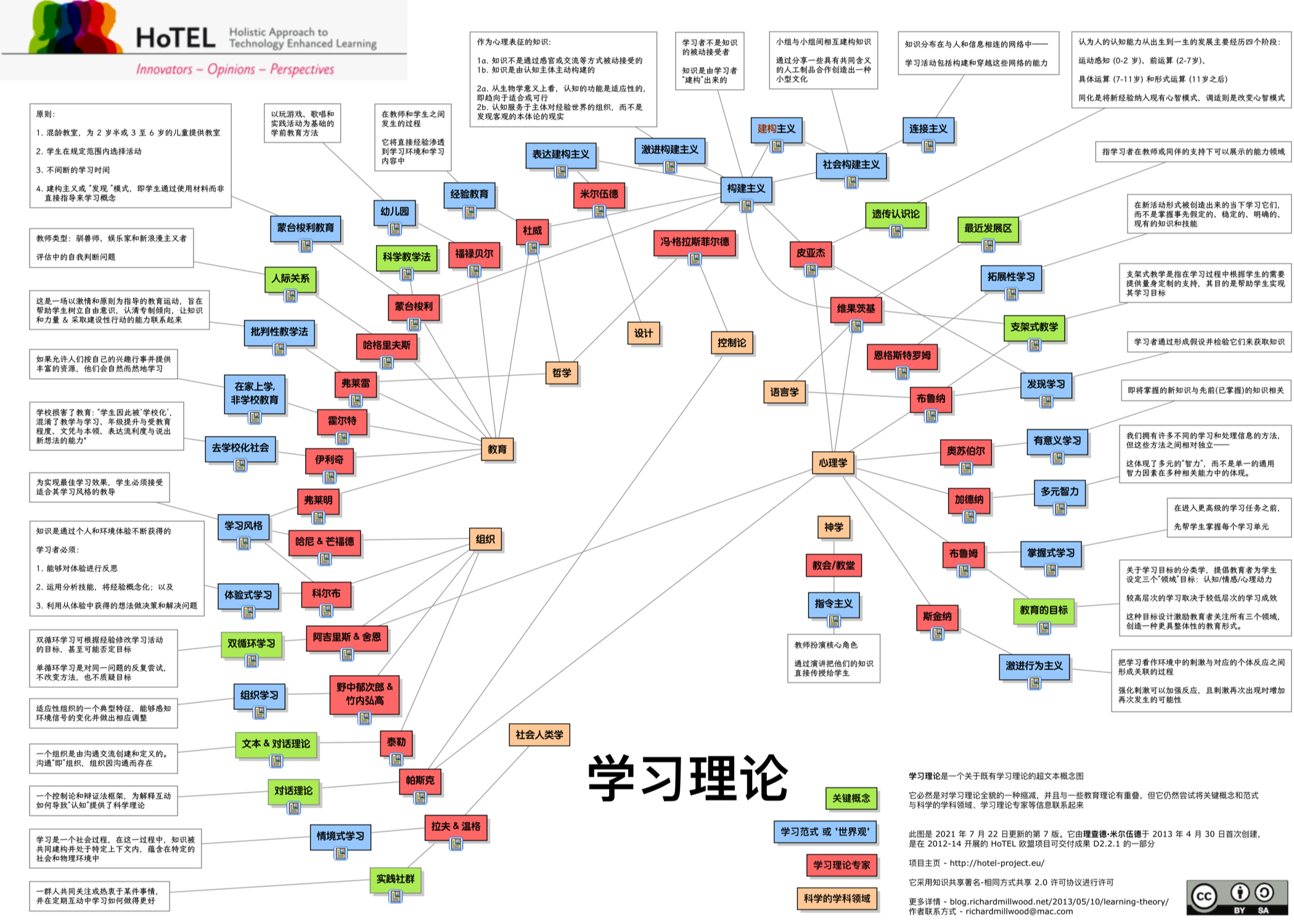 这份概念图是对学习理论全貌的一种缩减,并且与一些教育理论有重叠,但它仍然尝试将关键概念和范式与科学的学科领域、学习理论专家等信息联系起来