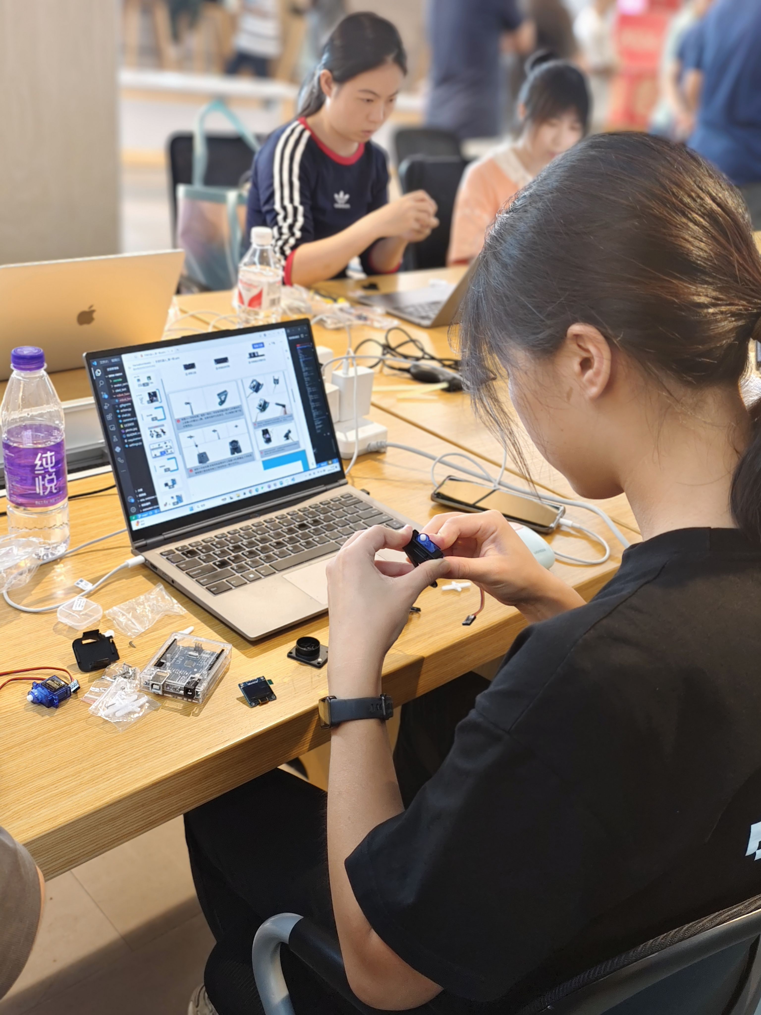 看到大家有为自己的机器人转动,点亮屏幕的兴奋。有说出第一句话时周边朋友们一起激动鼓掌。还有更多卡壳时的愁眉不展与主理人一刻不停忙的快干烧了的CPU[偷笑]