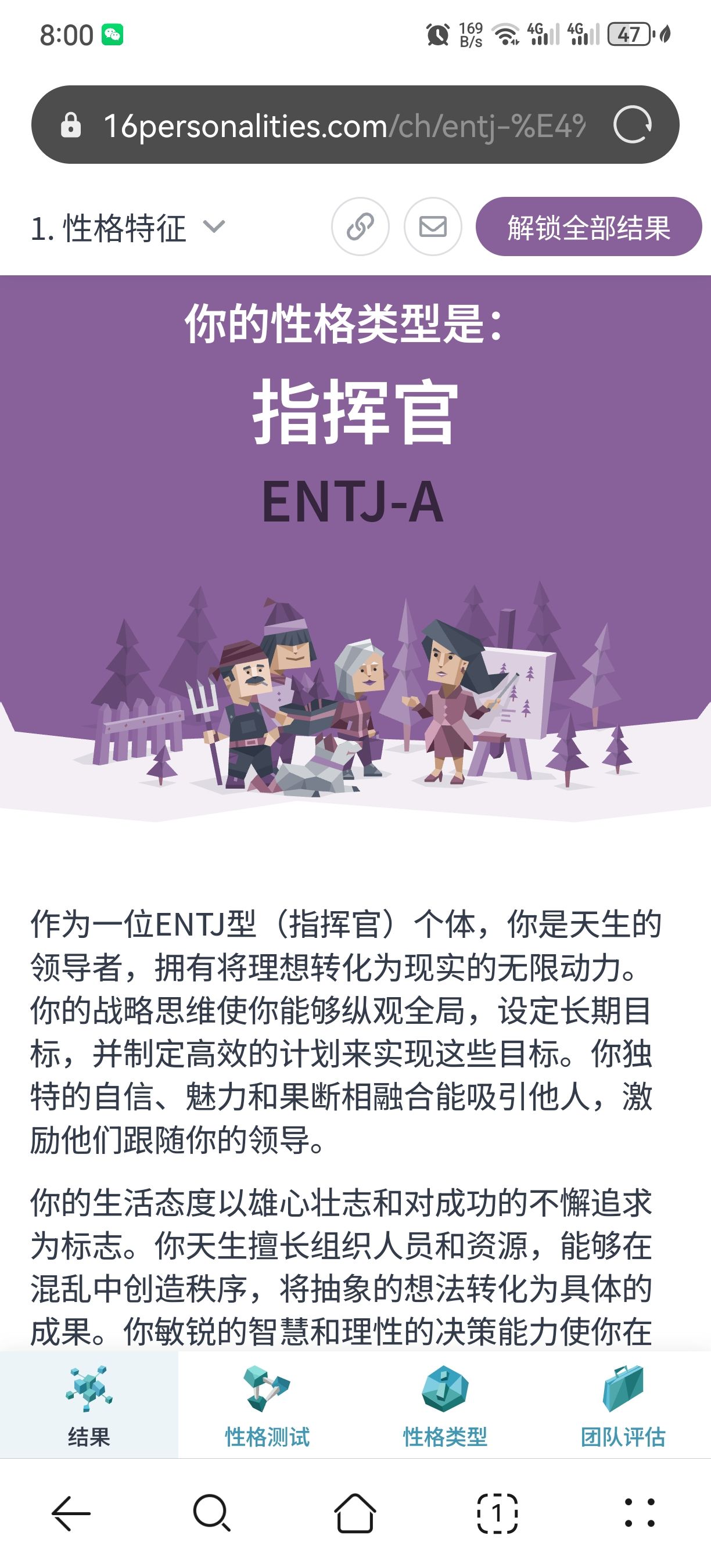昨晚做了个人格测试…我竟然是ENTJ指挥官性格…难怪不好找对象,可能太强势了