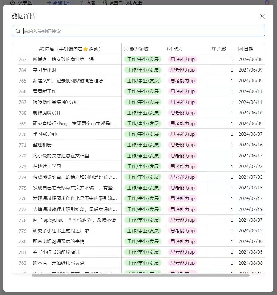 而对我来说,每日积累的多维表格作用很简单,【可以回顾到底做了什么。】