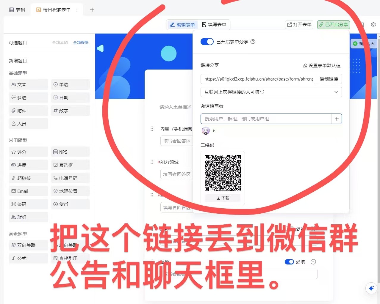 我也找到了能快速记录的方式,微信自己弄个群,把生成的飞书链接放到群公告、聊天里,就可以完成多设备都能记录。🥹