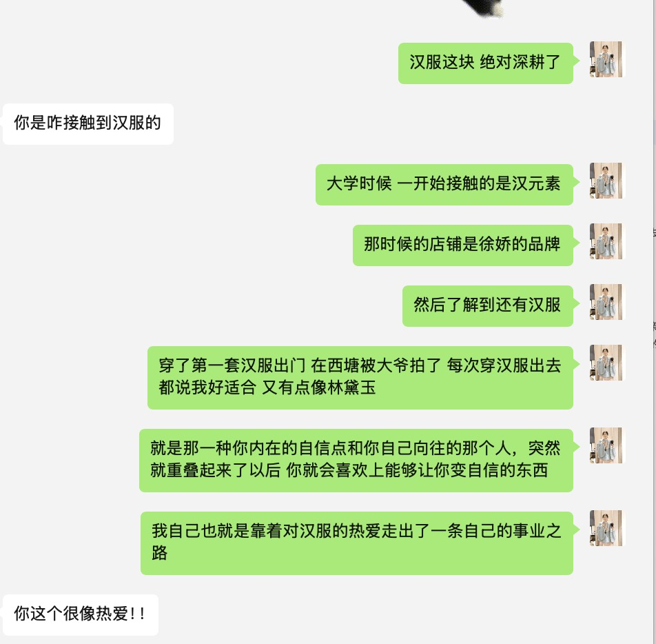 我很庆幸从一开始就深耕在汉服,通过汉服,延伸出一系列的职业发展方向、资源积累、人脉触达、认知提升。