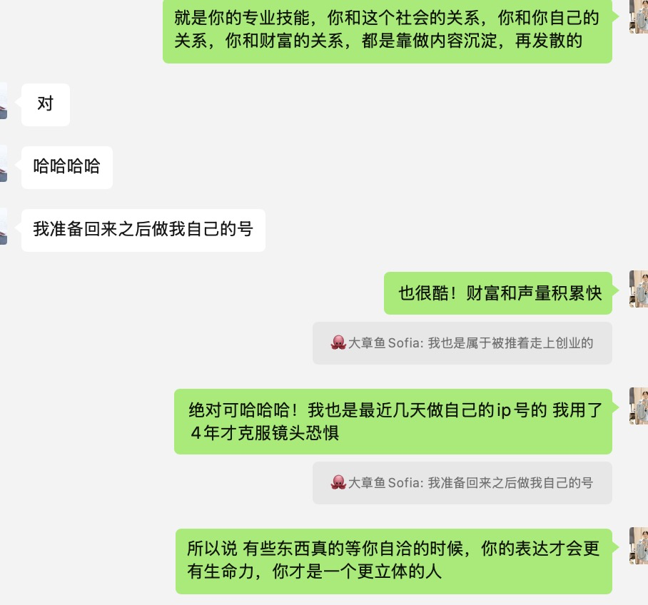我的专业技能,这个社会的关系,和自己的关系,和财富的关系,都是靠做内容沉淀,再发散的。——很垂直,一路都是沉淀,并且不可替代。