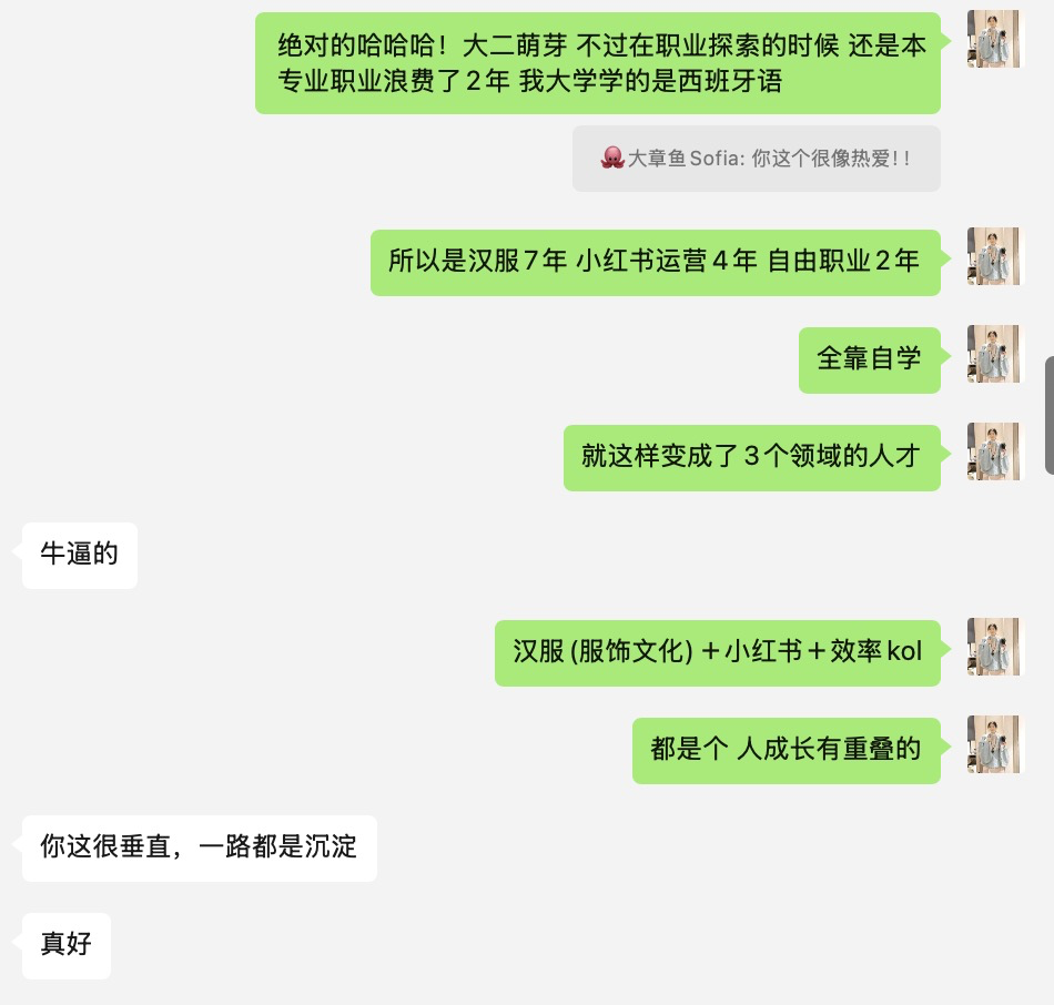 汉服(服饰文化)+小红书BC端运营+(思维+工具)效率kol,都是个人成长有重叠的:
