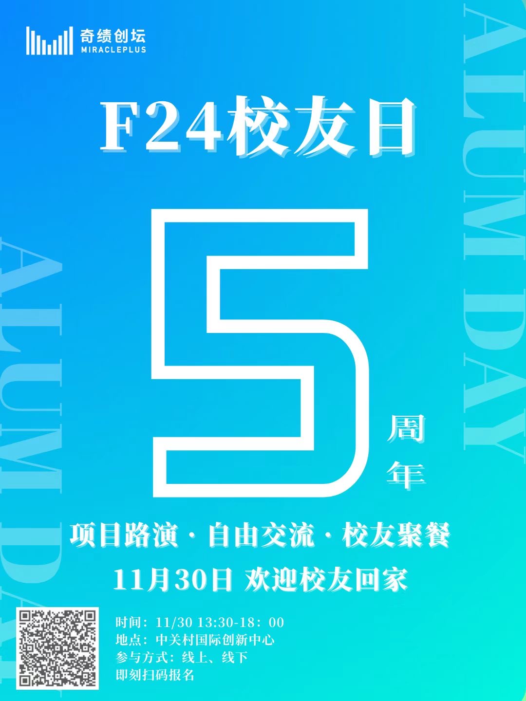 最后,真心祝愿(也相信一定成功)2024秋季Demo Day圆满成功,真心欢迎新一届的校友们加入奇绩这个温暖的大家庭。