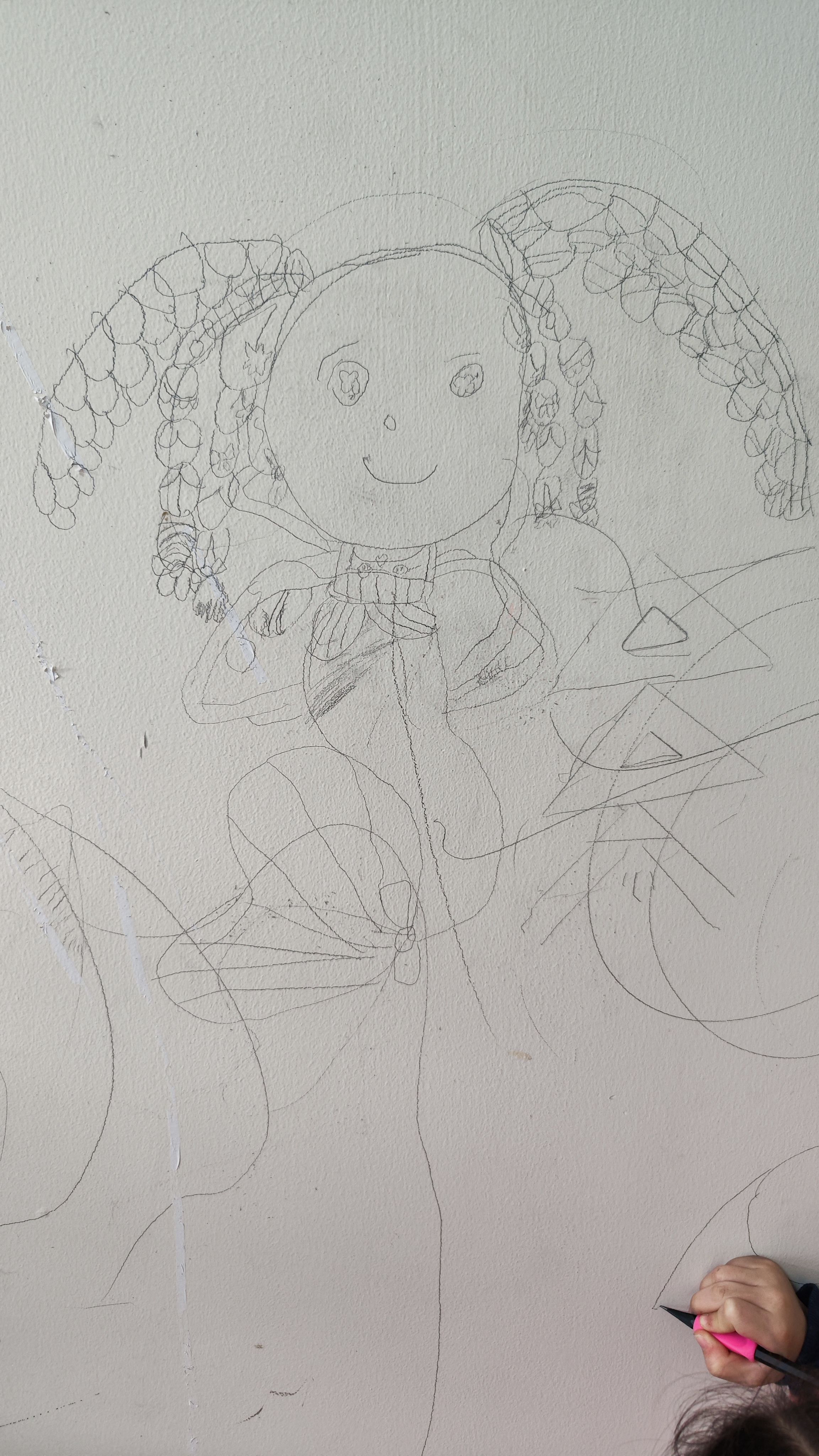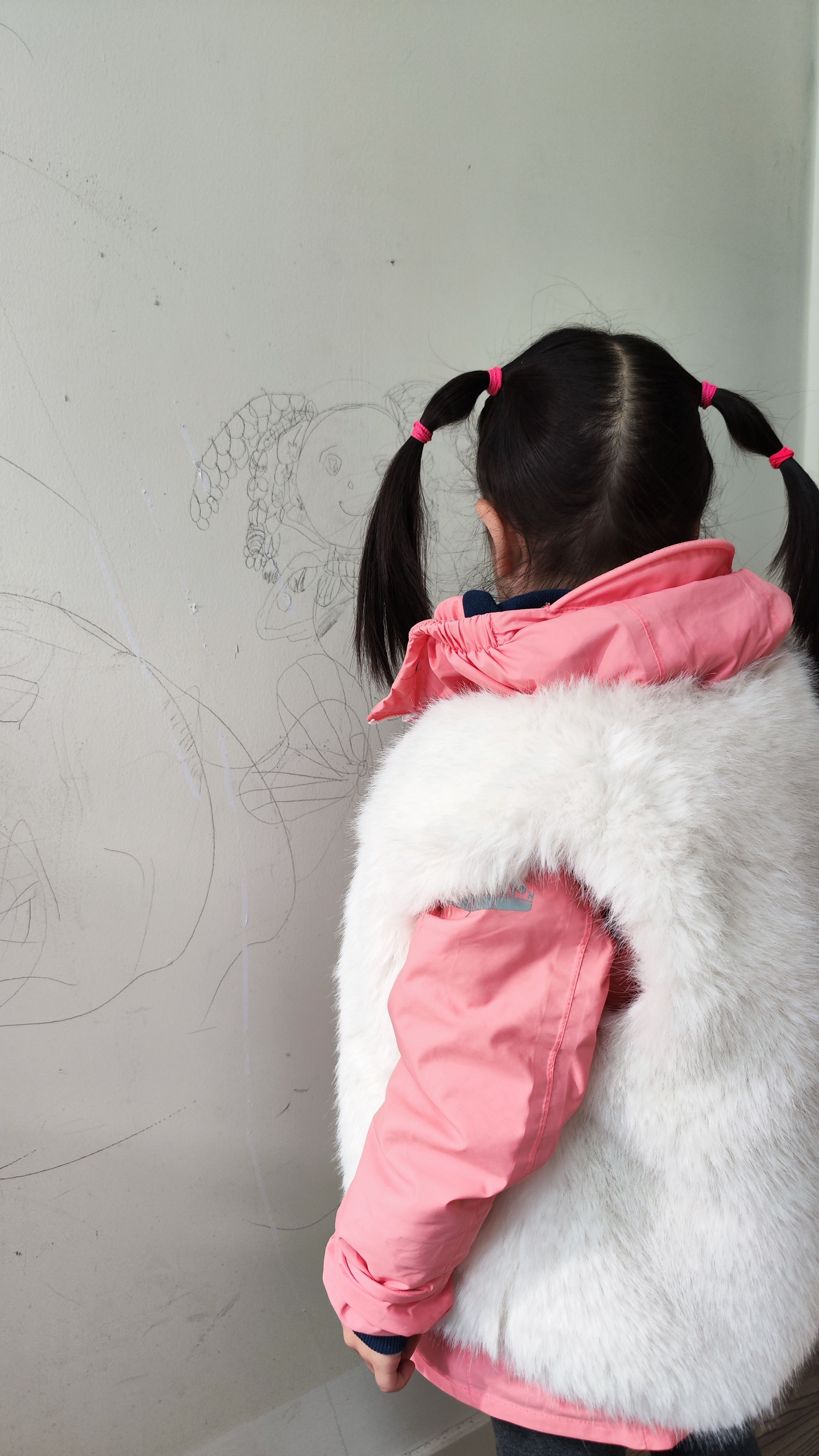 1.早上起来发现小宝在墙上画画,我说,家里有黑板,说过不能在墙上乱画,哦这幅画的还不错,把它画完吧,以后不可以了。