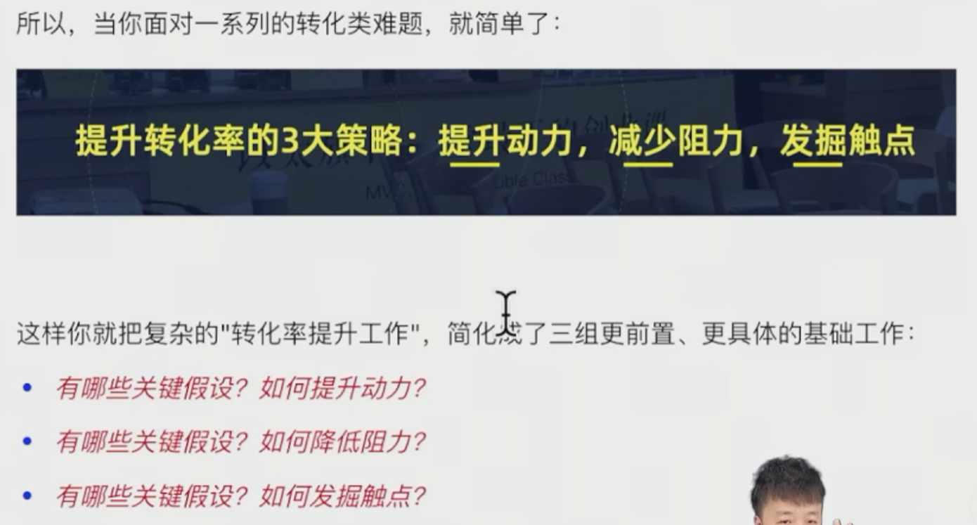 一、原则1个:提升转化率的3大策略:提升动力,减少阻力,发觉触点