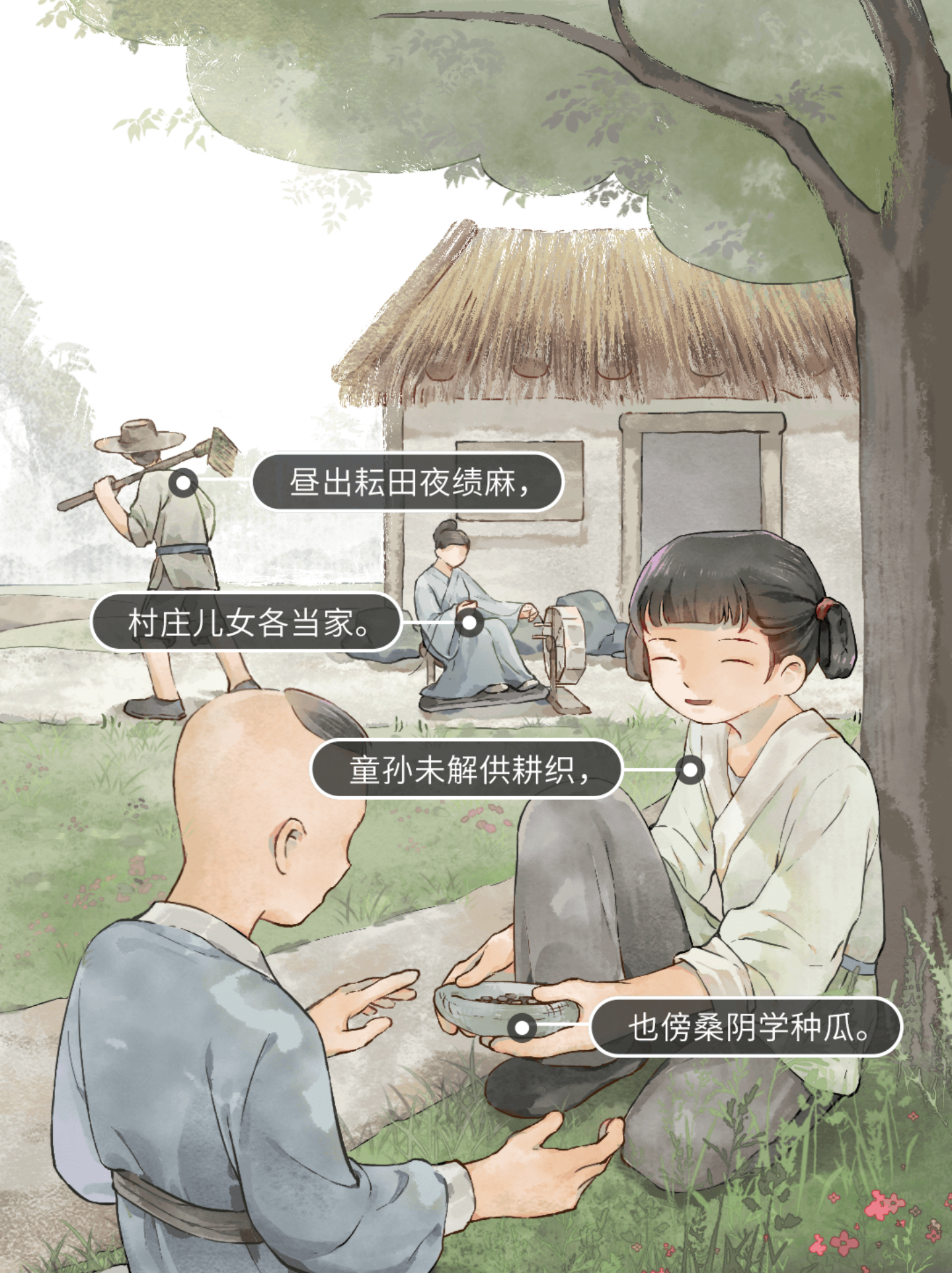 童孙未解供耕织,也傍桑阴学种瓜。