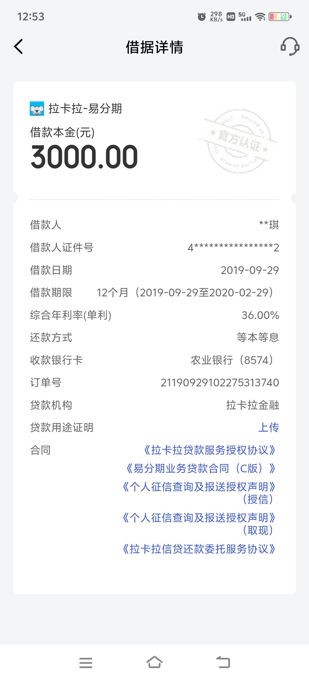 看到拉卡拉在京东金融里下架了,我都懵了,问京东金融的客服终于问到了拉卡拉的客服电话,联系客服表示有积极还款意向,客服说我到目前为止需要还 2874.25,我说我在征信报告上看的本金是 1484,客服小姐姐说不可能只还本金,肯定是要还点利息的,只能帮你申请最大力度的减免是 1700,把钱转进客服提供的账户后,七个工作日才能处理好。