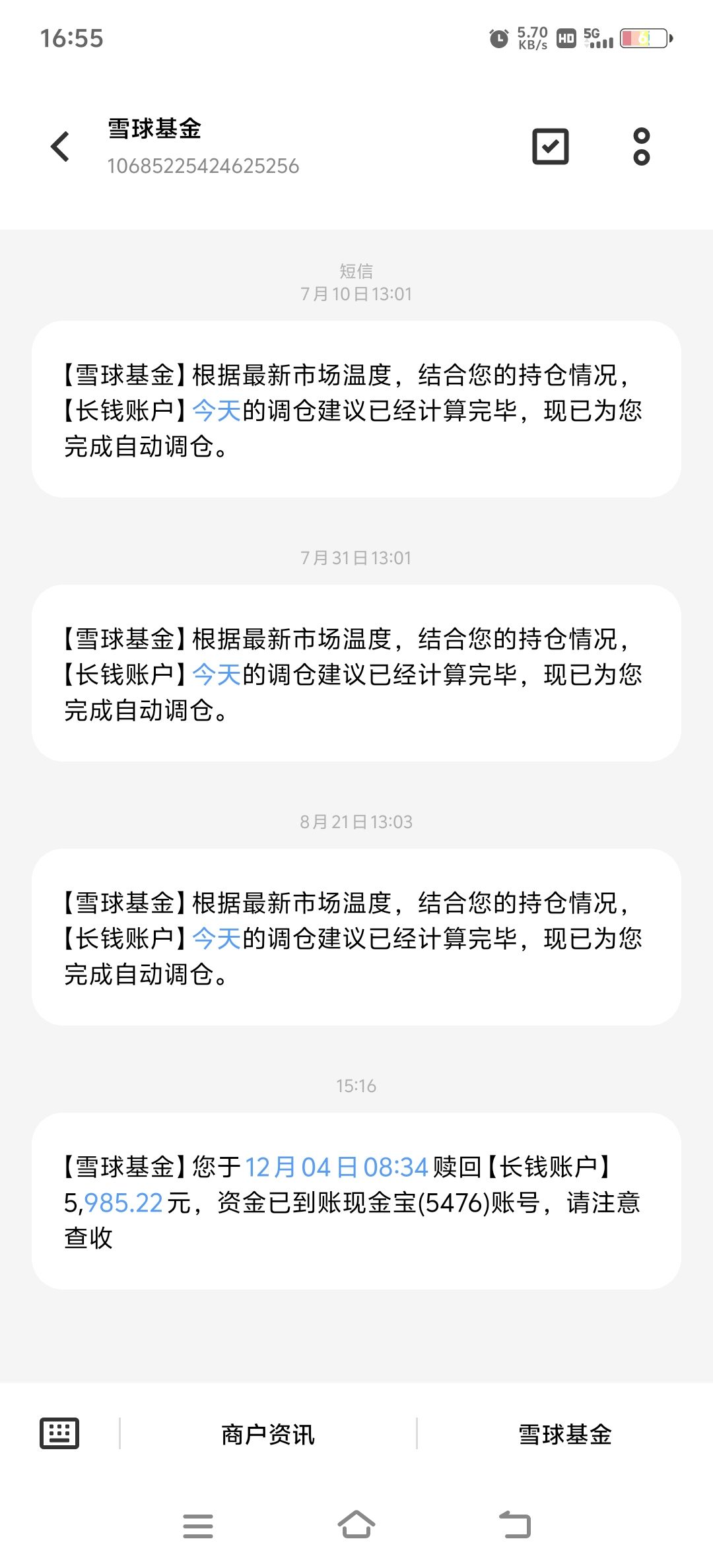 为了实现年初定下还清网贷的目标,我只能把长钱账户里的钱提出来还贷款,定投了 11 个月,本金是 5500,收益485.24,到账 5985.22。