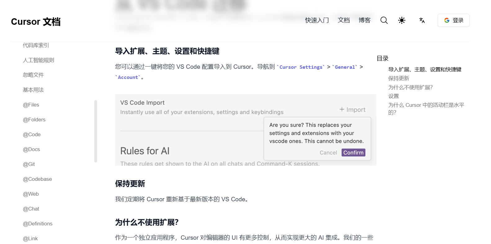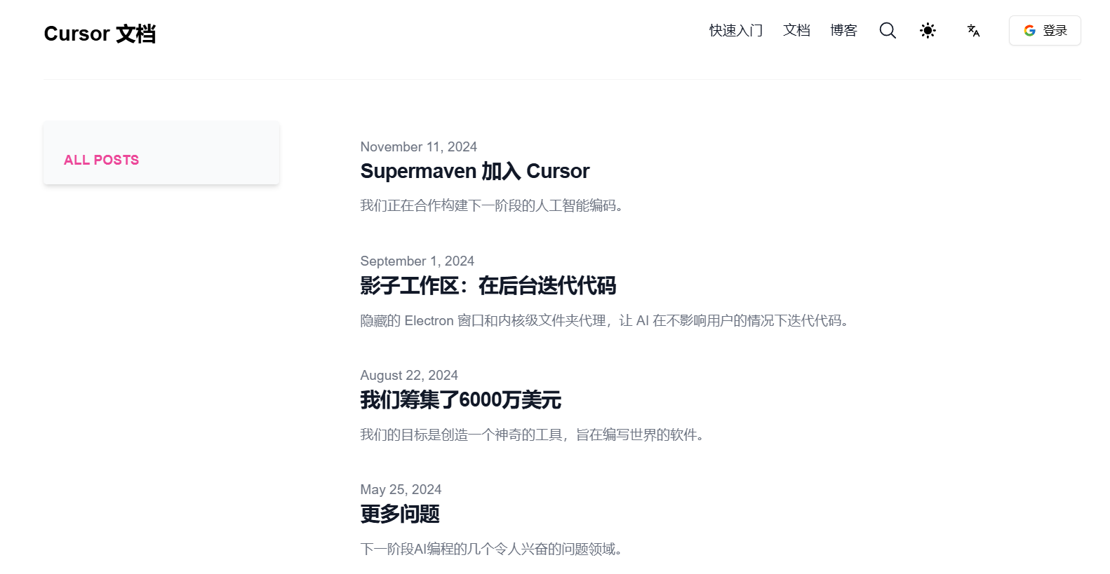 大家期待已久的中文文档终于来啦,里面涵盖了cursor官方文档和博客等的最新动态,方便新手快速入门cursor!✨(ps:虽然有沉浸式翻译等软件,但是每次都需要等待翻译,有时就是觉得有点麻烦。,对于高频使用的工具,还是来一个中文版的。)