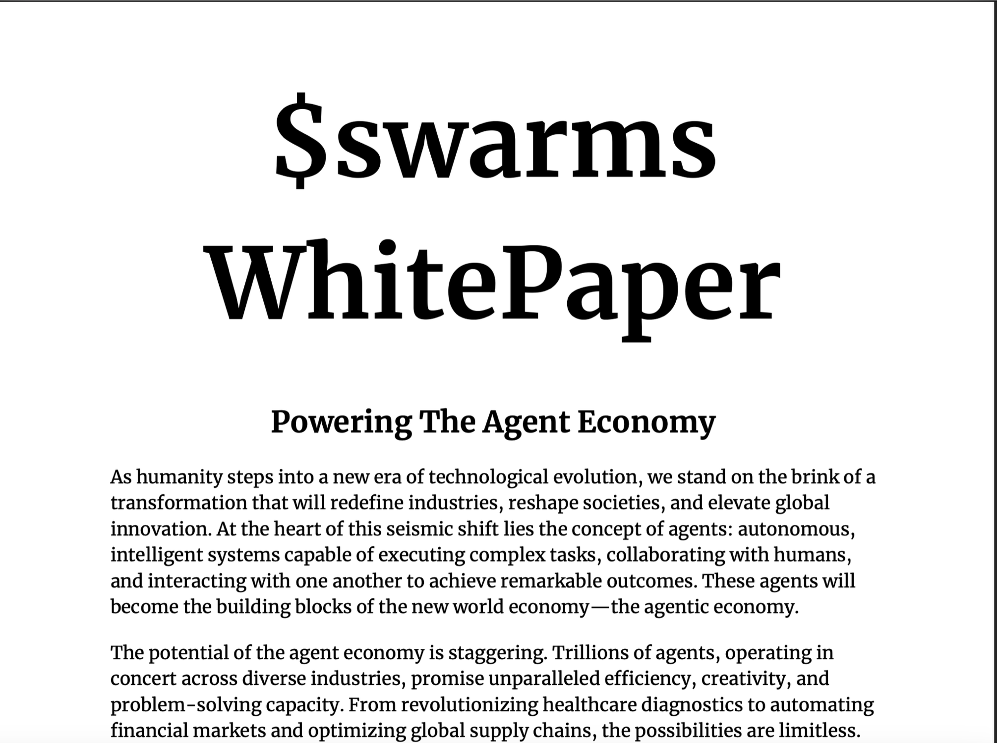 2. 发布了 $swarms 的白皮书