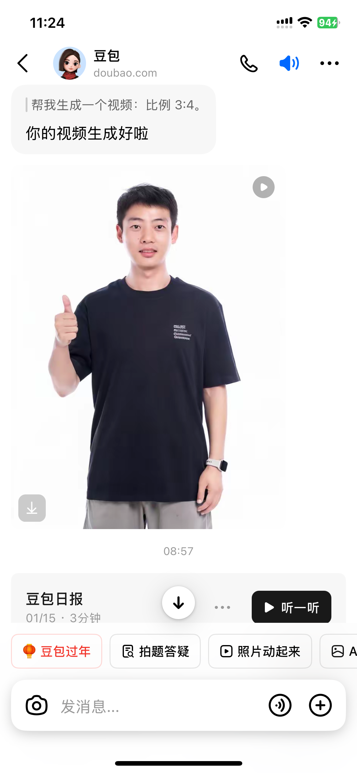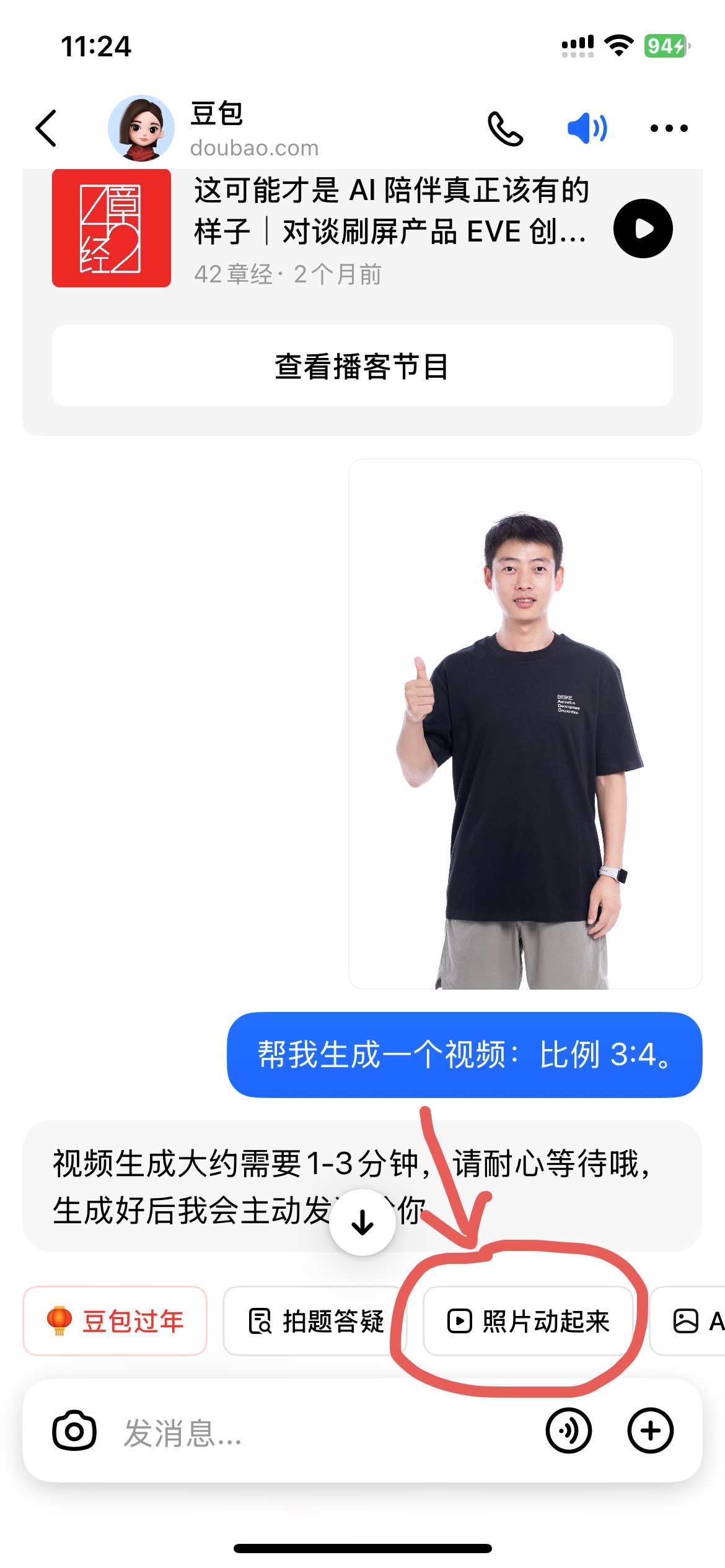 豆包新上了【照片动起来】功能,上传一张照片变成了动态视频(还可以保存为实况 LIVE,图 4 是实况),我这个还有闪光灯,变成走秀了~