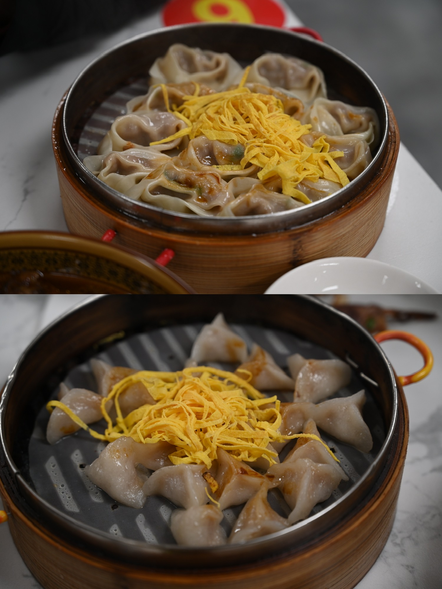 这边的汤包好像就是蒸馄饨,并没有汤汁。我吃着觉得没有很出彩。芋饺是第一次吃,外面的皮比较 Q 弹有韧劲。个头很小,但是里面居然也包了肉和芋头馅,麻雀虽小五脏俱全了。