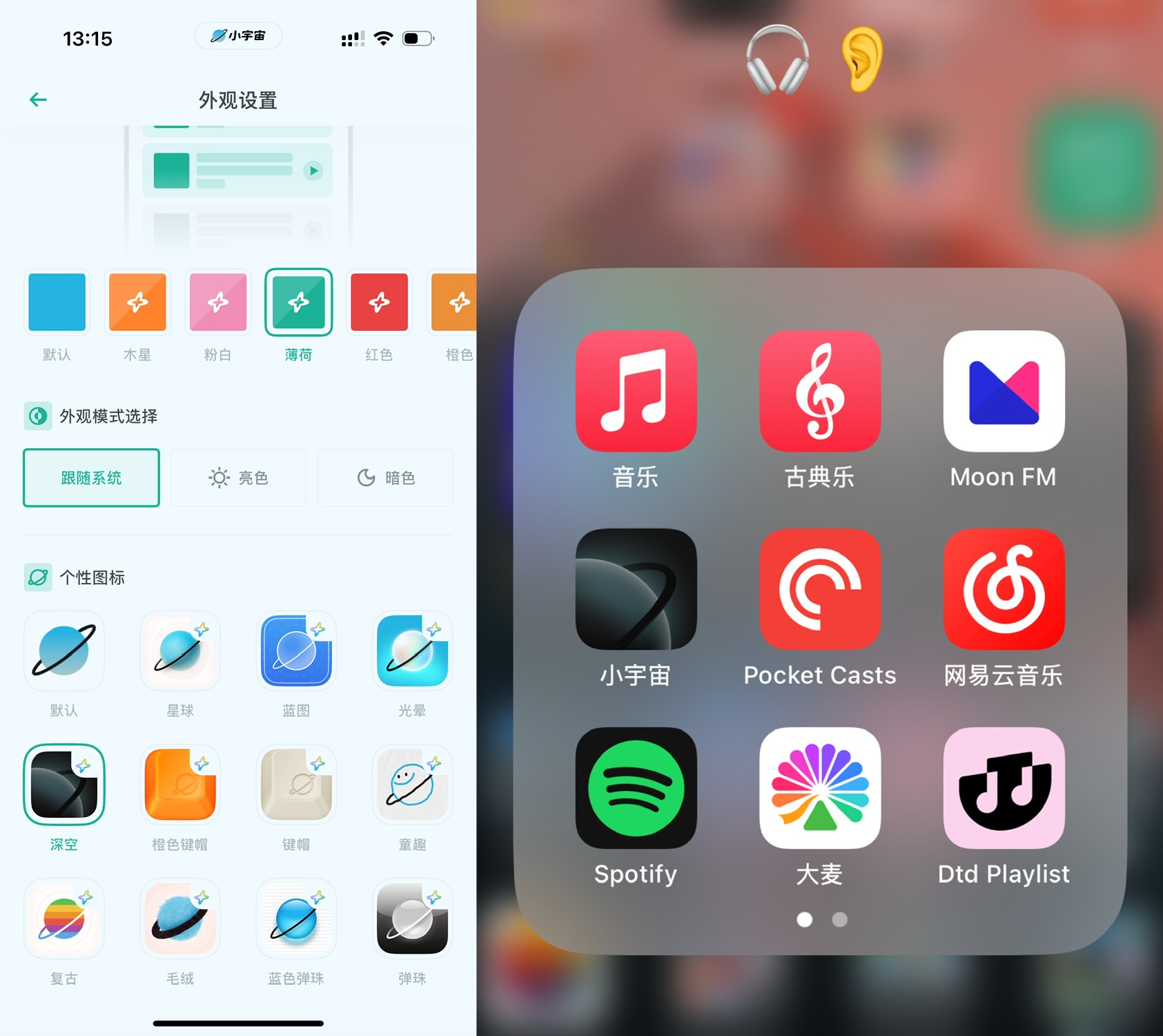 补充个小细节,如果iOS 18.2.1更改图标之后,发现桌面文件夹缩略图里的缩小版小宇宙图标依然是默认图标,重启一下手机就会正常显示。
