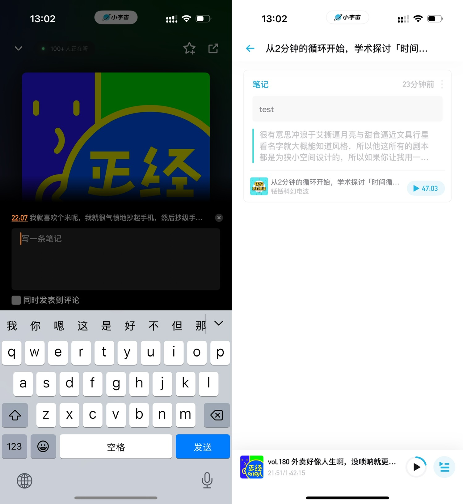 目前的呈现类似即刻的转发功能,只不过带了时点和对应时点的语音转文字内容,称之为「时点速记」会更贴切。语音转文字的内容依然无法编辑,跟「分享单集视频」时一样。看起来小宇宙现阶段还是侧重于提高语音转文字的准确性,而不是把时点笔记的编辑权交给用户。