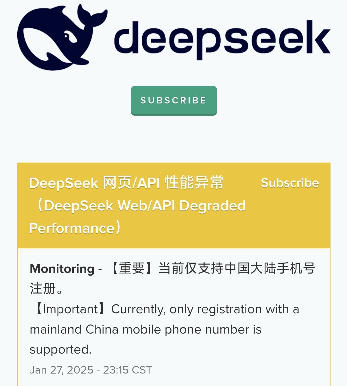 Deepseek 现在调整为仅允许+86 手机号注册