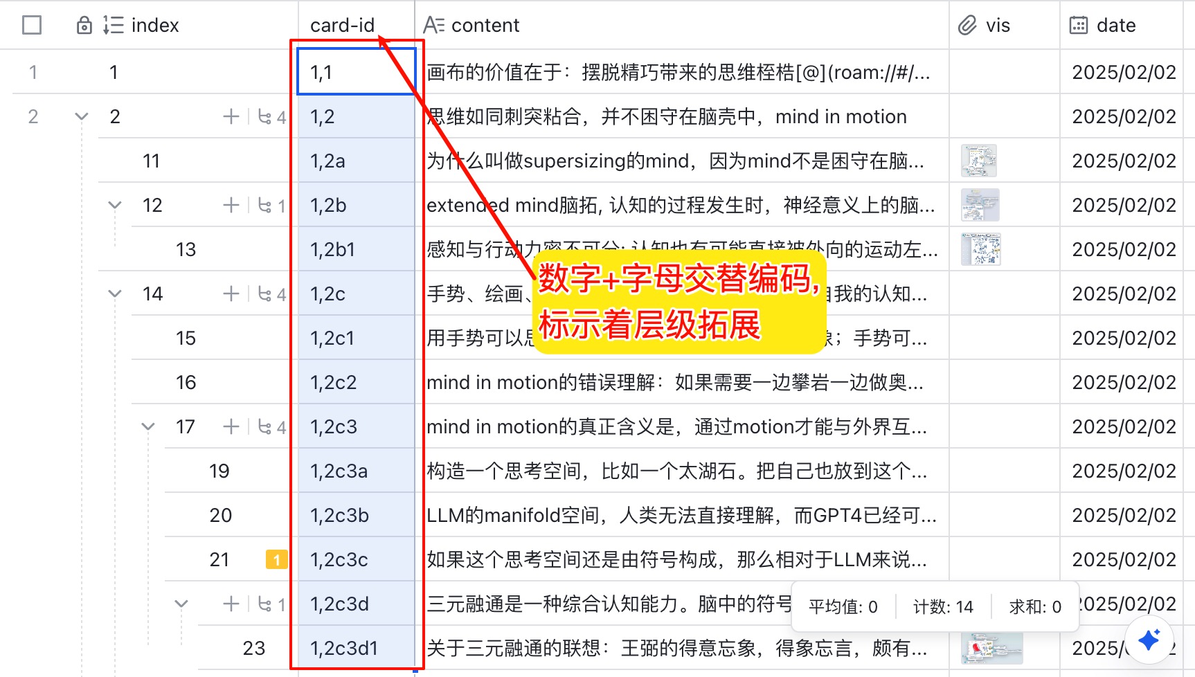 - 保留卢曼卡片盒笔记法中的卡片编号, 单独一个字段存储
