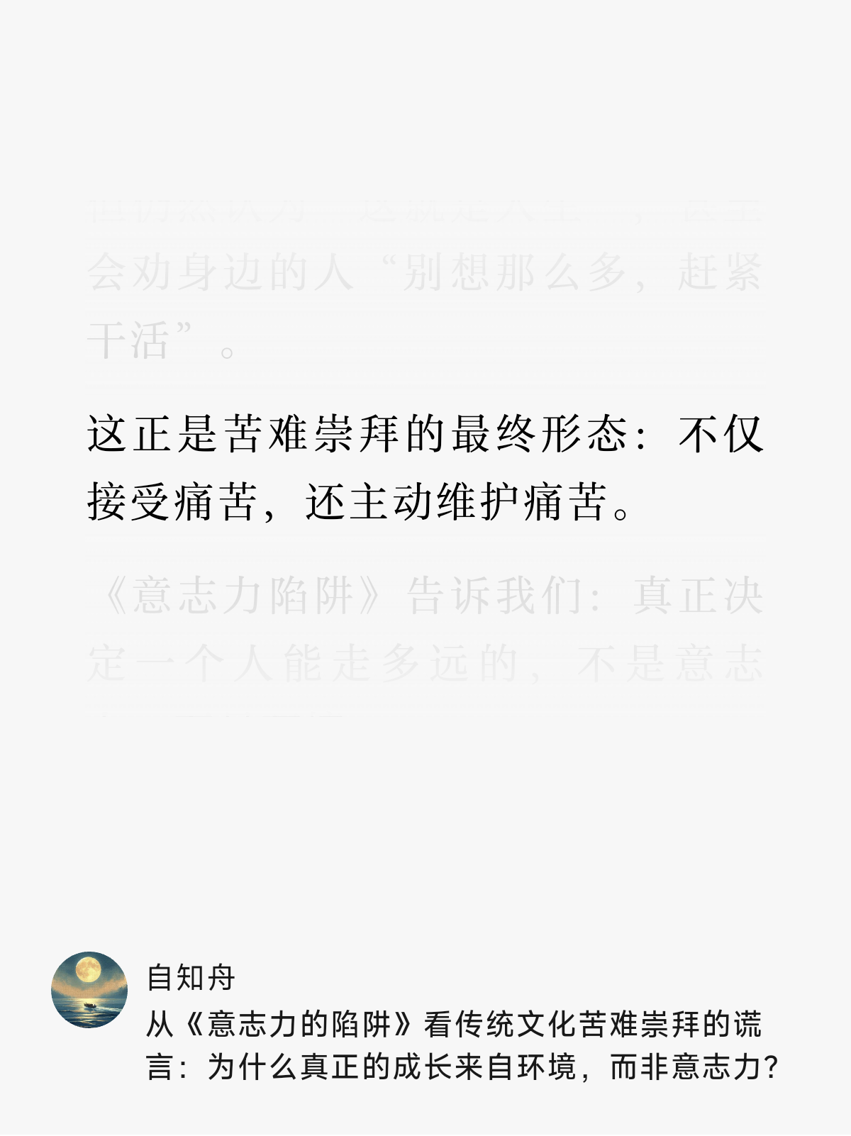 然而,苦难崇拜、服从文化与意志力神话,共同编织了一张巨大的心理陷阱,我们深陷其中却不自知。