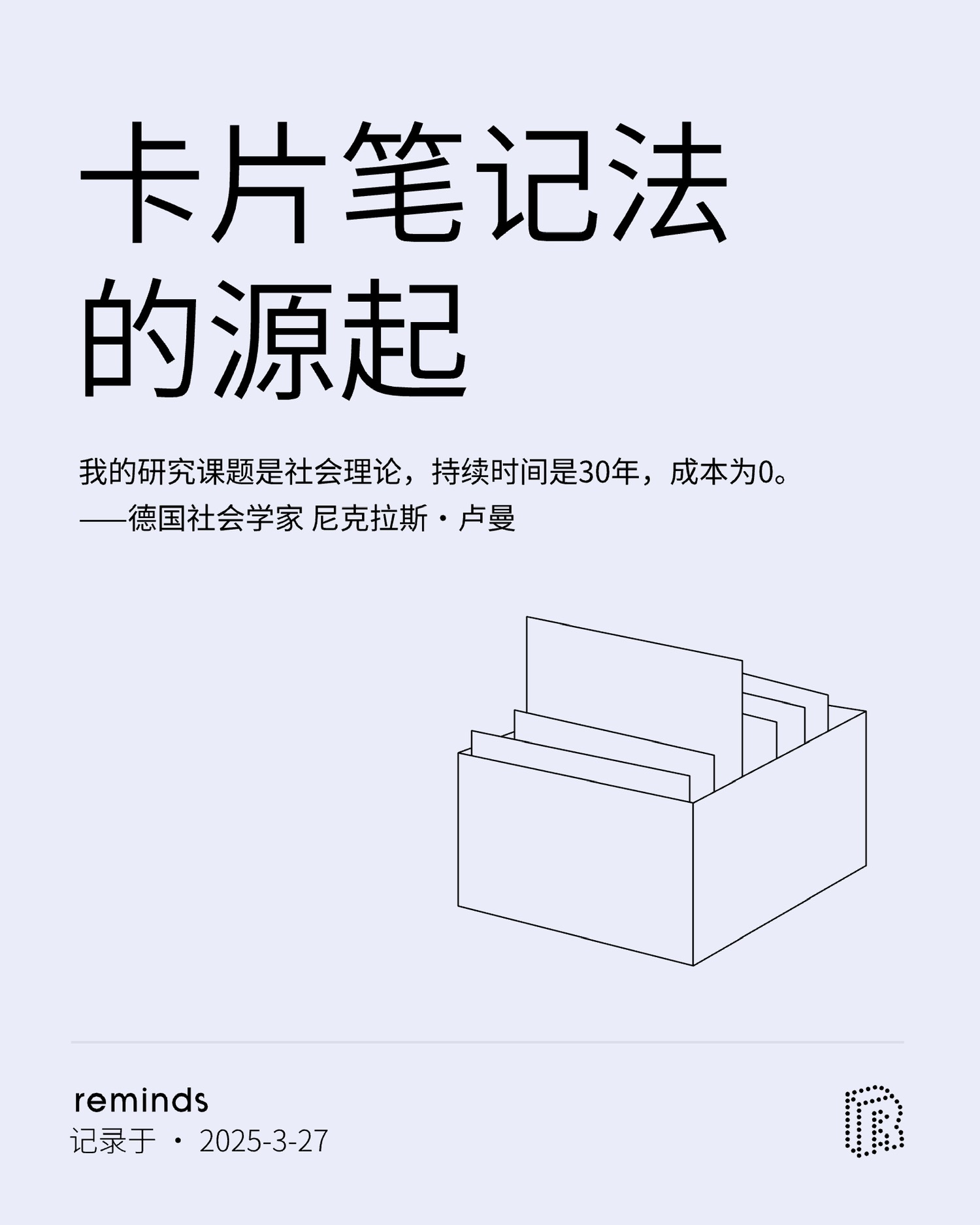今天这篇来分享一下卡片笔记法背后的故事,著名德国社会学家尼克拉斯·卢曼的故事。