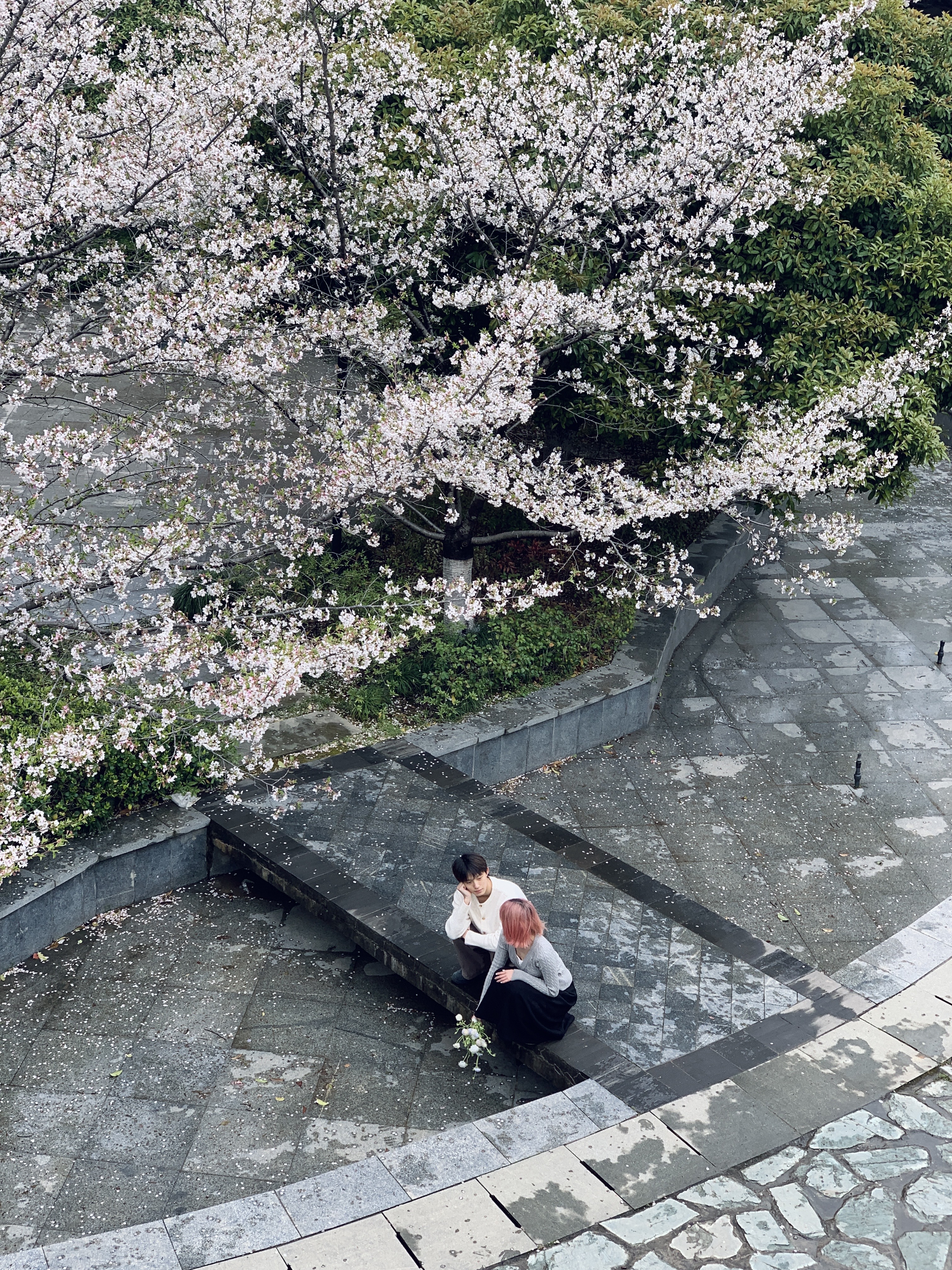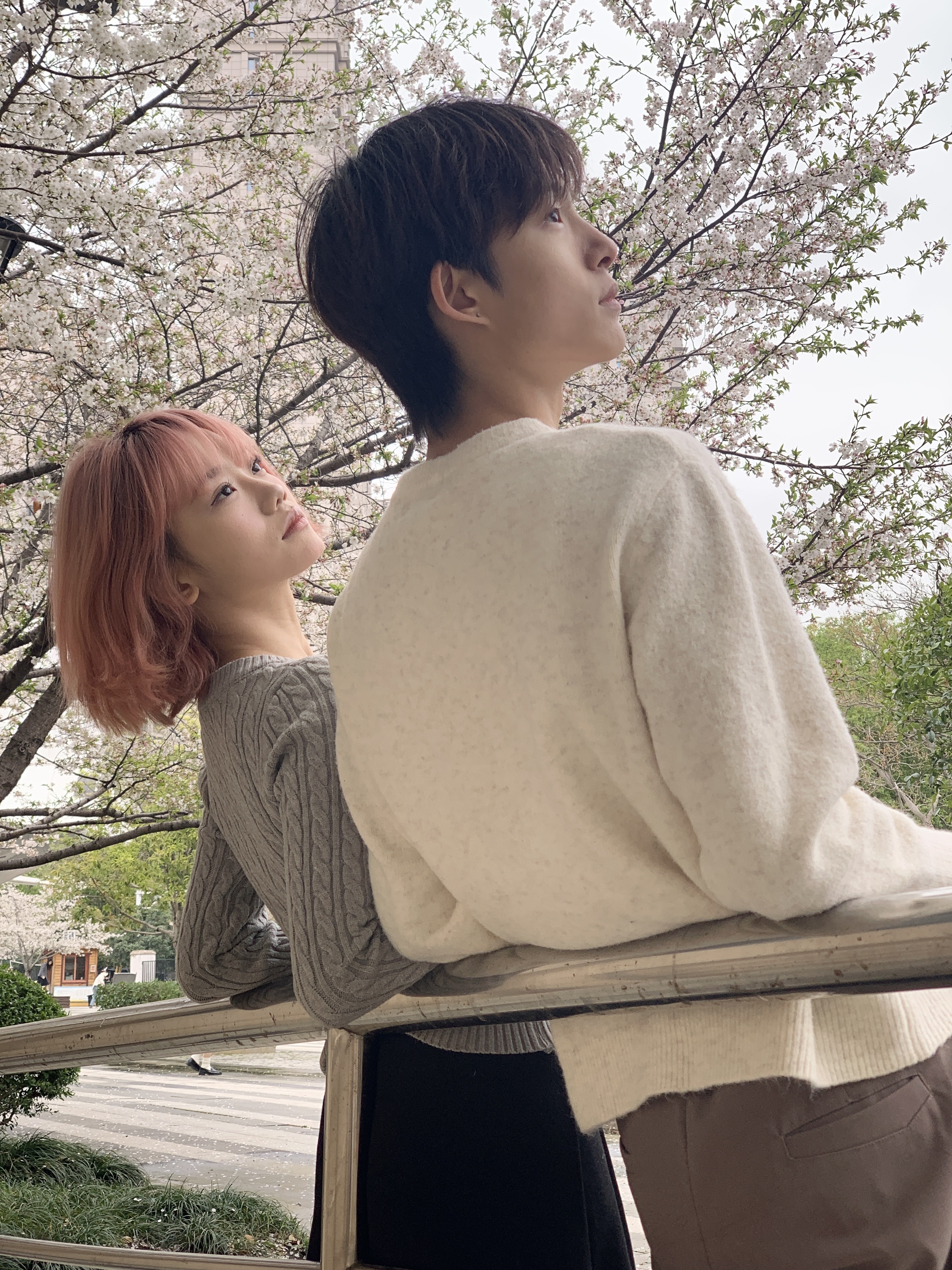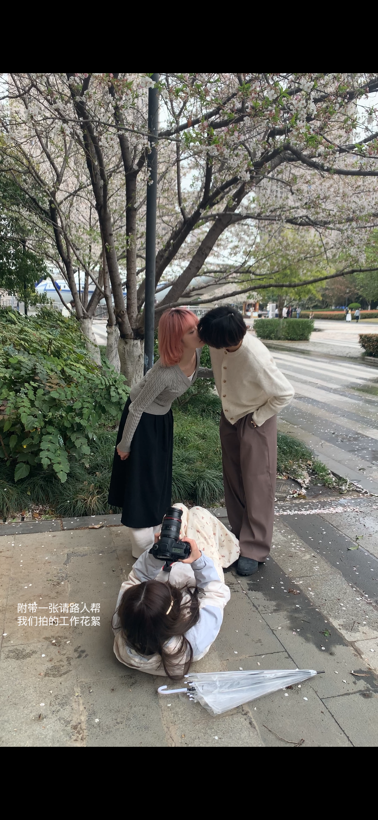 满足了 在白樱谢幕前拍了情侣写真