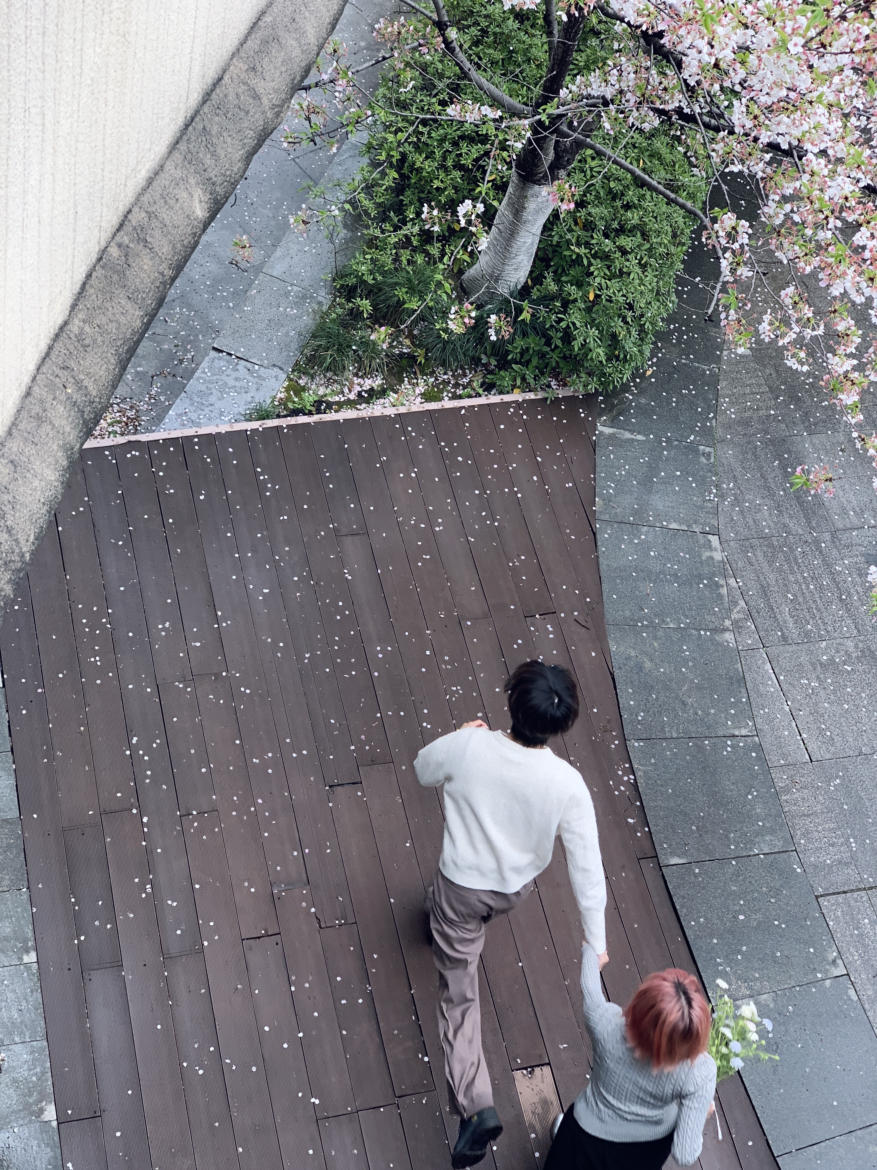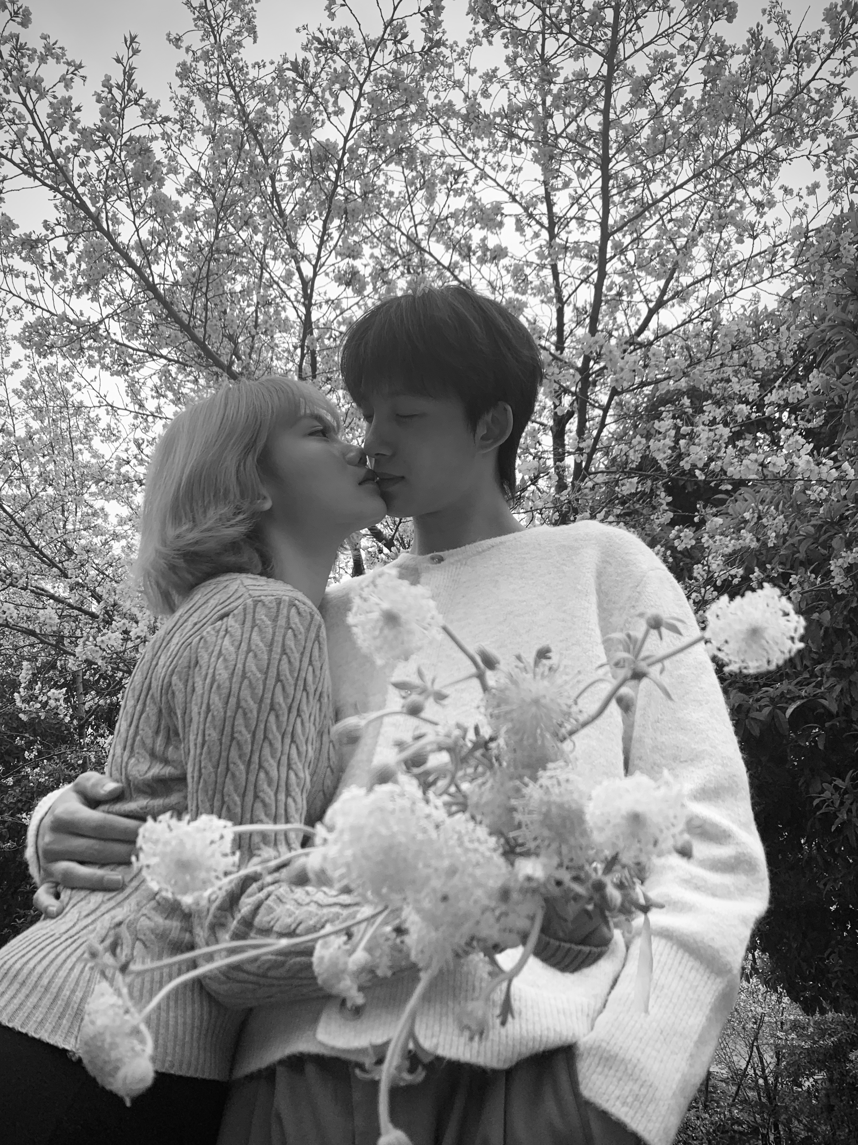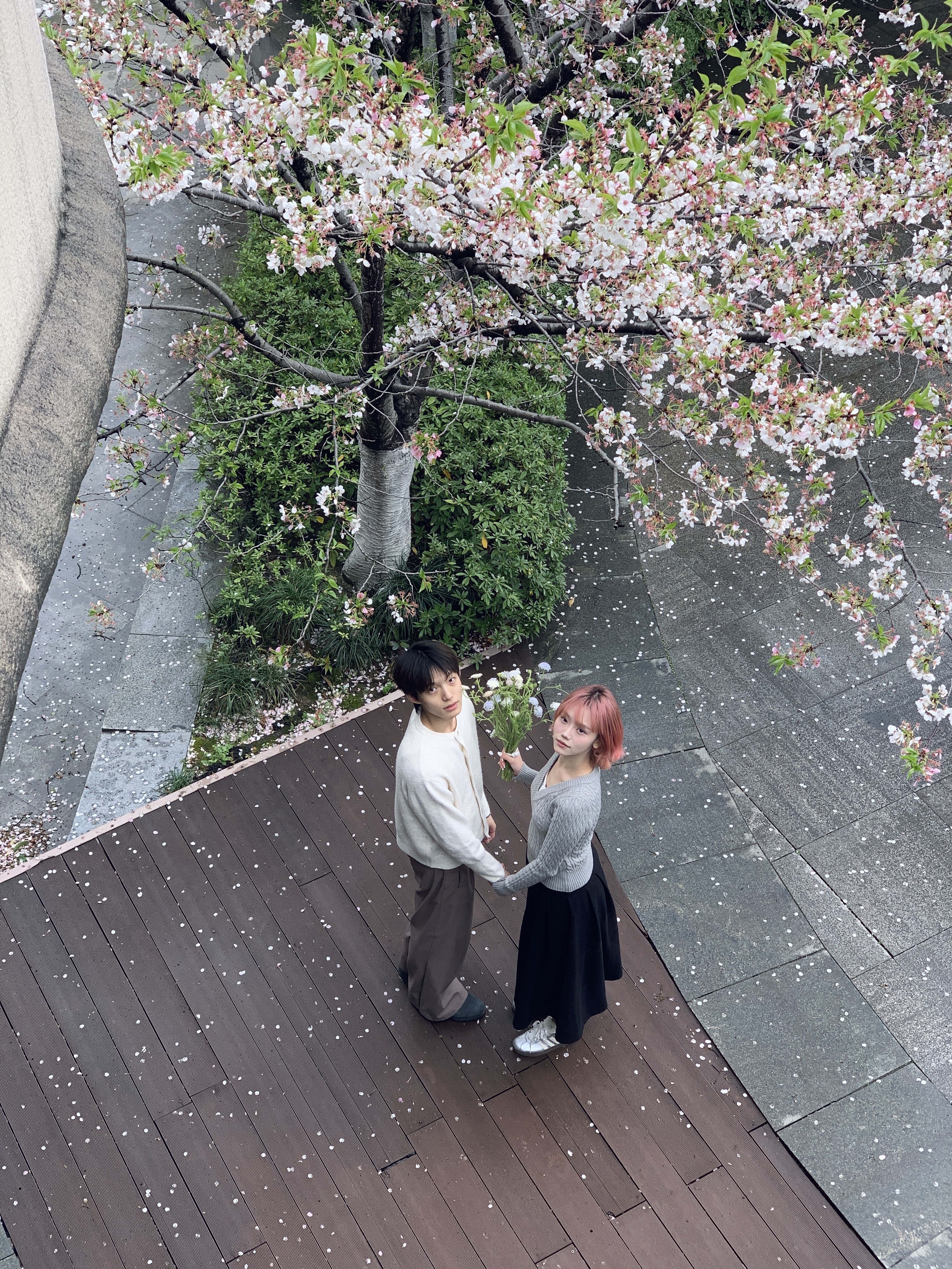满足了 在白樱谢幕前拍了情侣写真