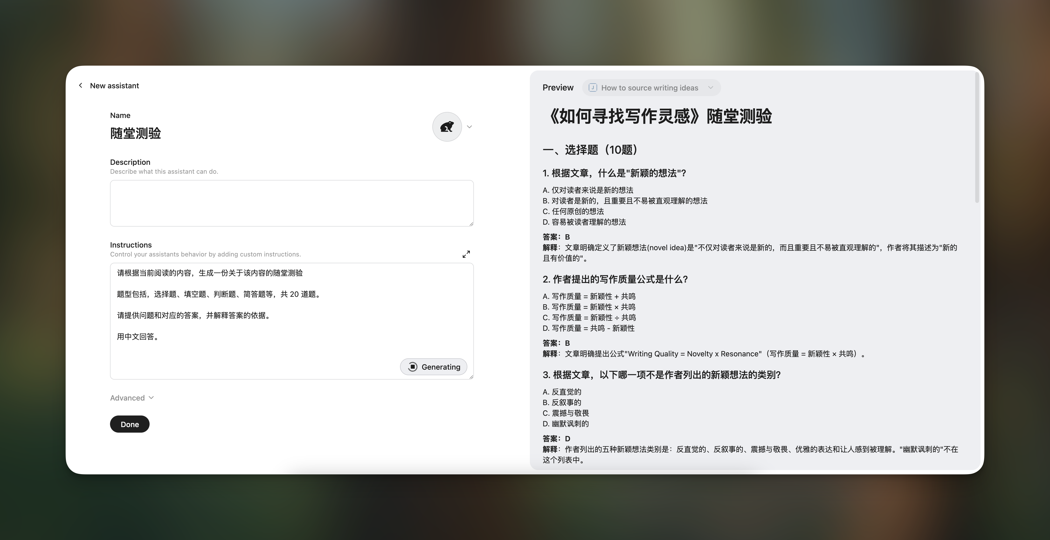 一个是「随堂测验」,根据正在阅读的文章,生成问题和答案,加深理解。灵感来自 NotebookLM,前几周在看 Ivan Zhao 和 Lenny 的那期播客,体验了这个「常见问题解答」,感觉很实用。