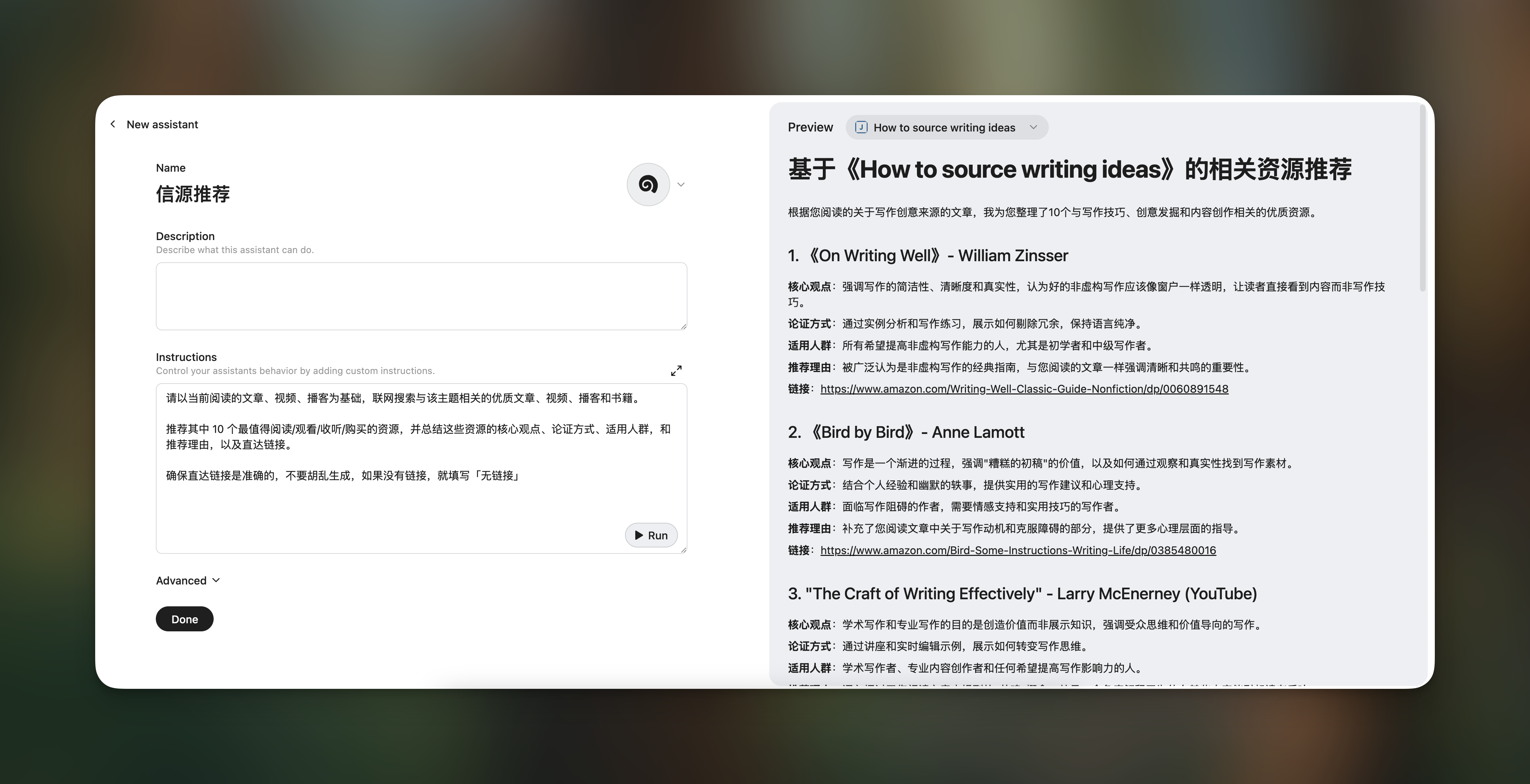 一个是「信源推荐」,基于目前在读的这篇文章,让 AI 继续推荐 10 篇同样主题的优质内容,提供直达链接。