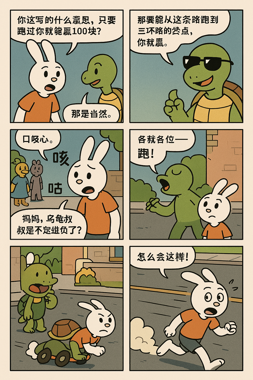 这个故事表面上是一场兔子和乌龟的赛跑,但实际上藏着很多层有趣又深刻的寓意: