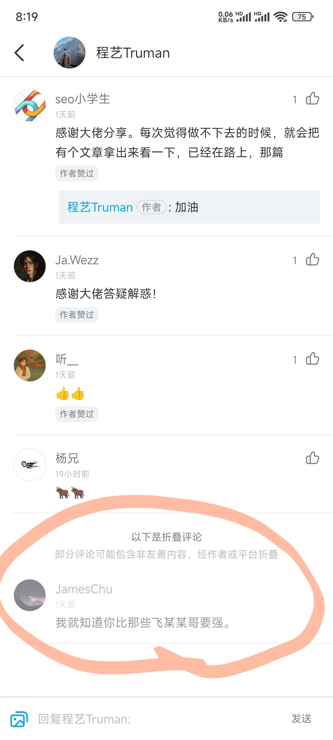 折叠评论。