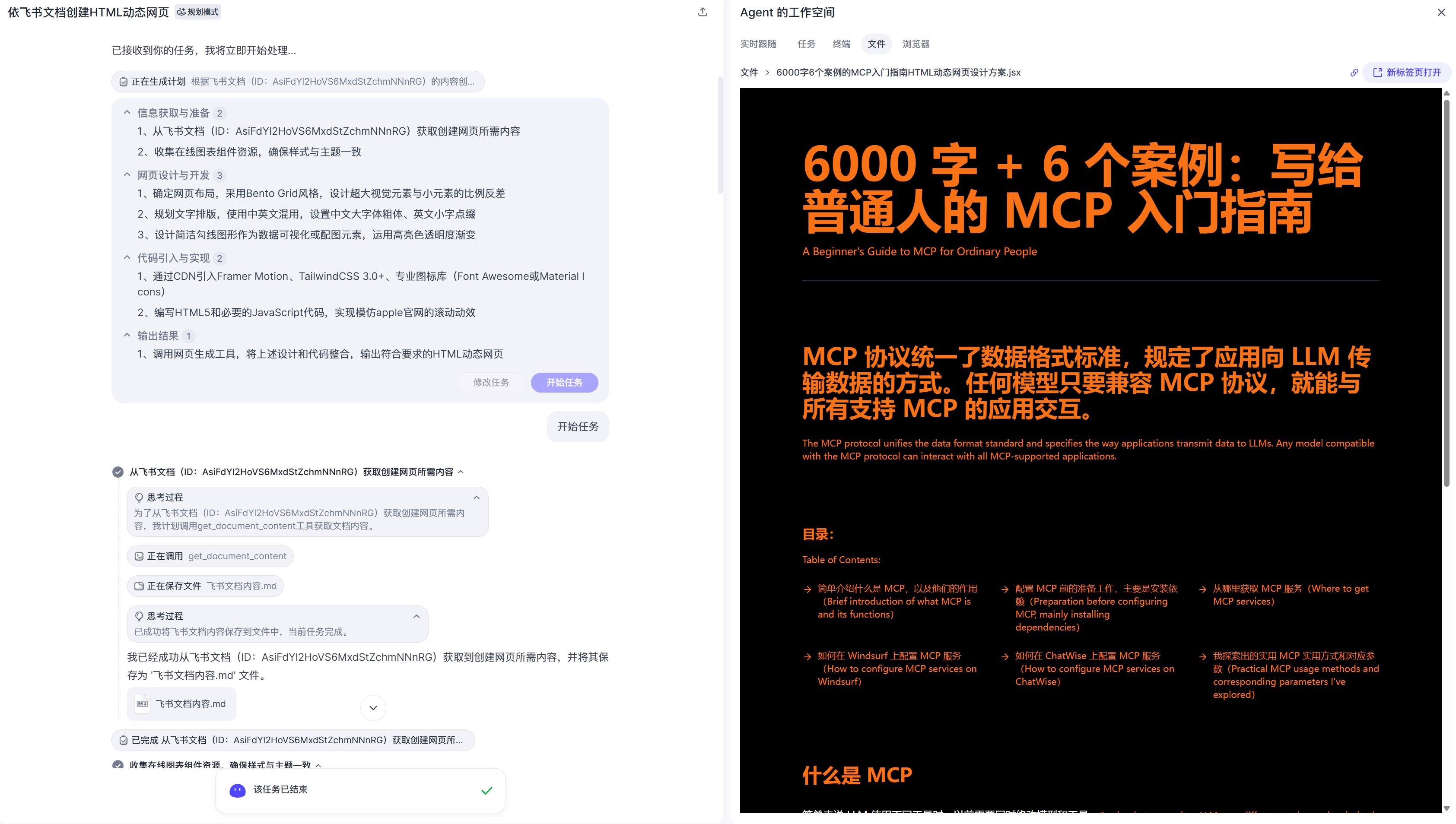 扣子空间新案例,从飞书文档生成可视化网页