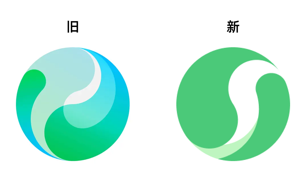旧版复杂的色彩过渡和阴阳图案叠加可能在小尺寸场景下辨识度降低。新版通过简化色彩层级(主色仅保留绿色+白色),在保持阴阳核心元素的同时,增强了视觉记忆点。