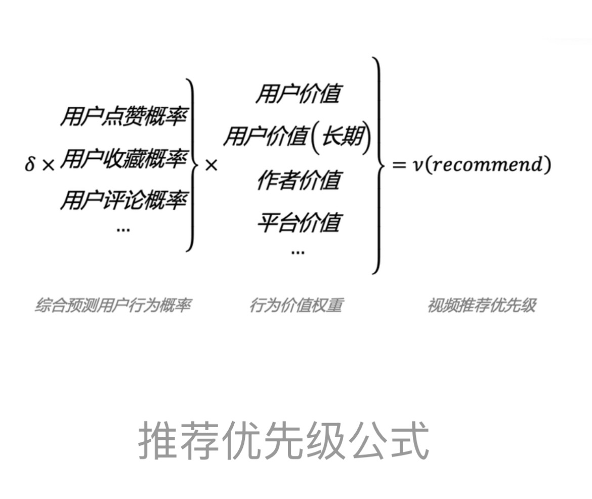 1. 推荐算法会通过算法模型预测用户对候选视频的行为概率(动作率)。结合用户行为和视频本身的价值权重,推算出视频推荐的价值分数,并将综合得出的价值最高的视频推送给用户。