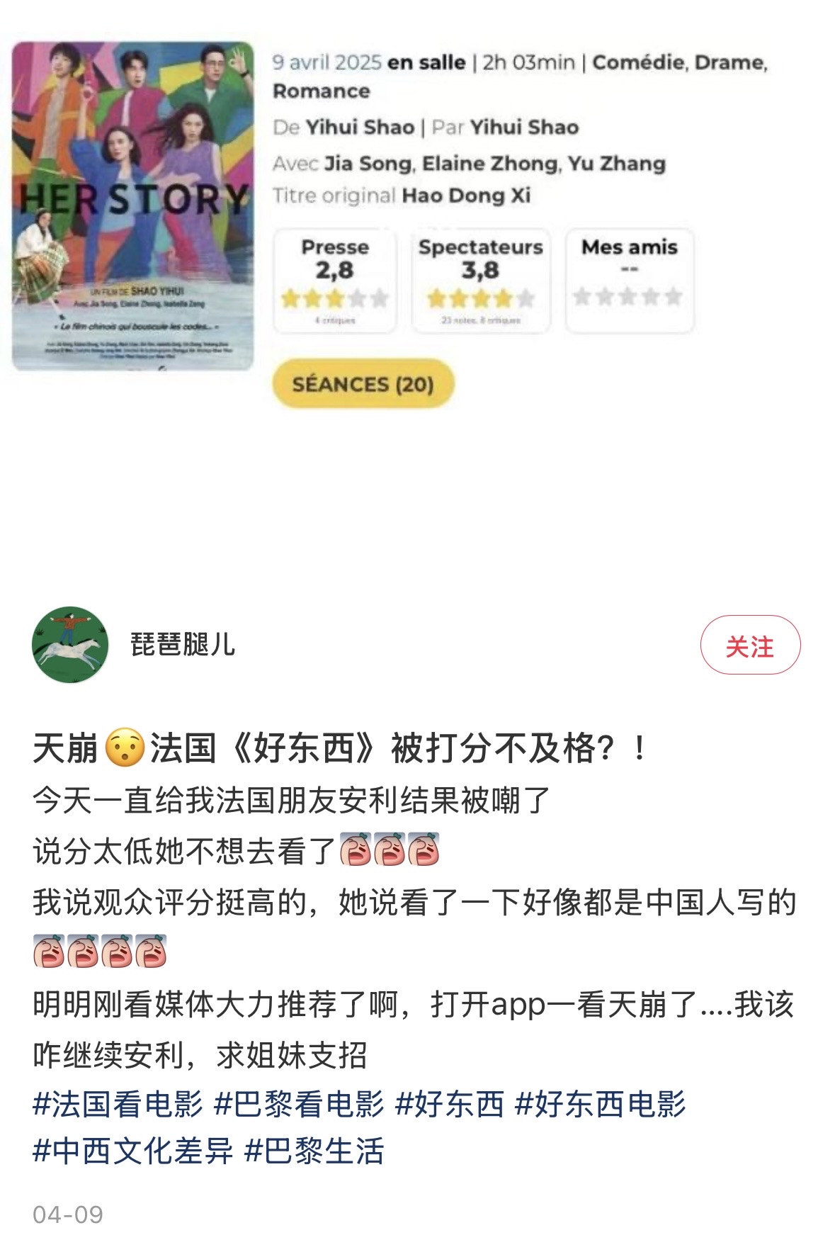 中法对分。咱这儿人挺“激进”的(导演和观众都够激进,特里耶来了都惊讶),作品挺保守的。
