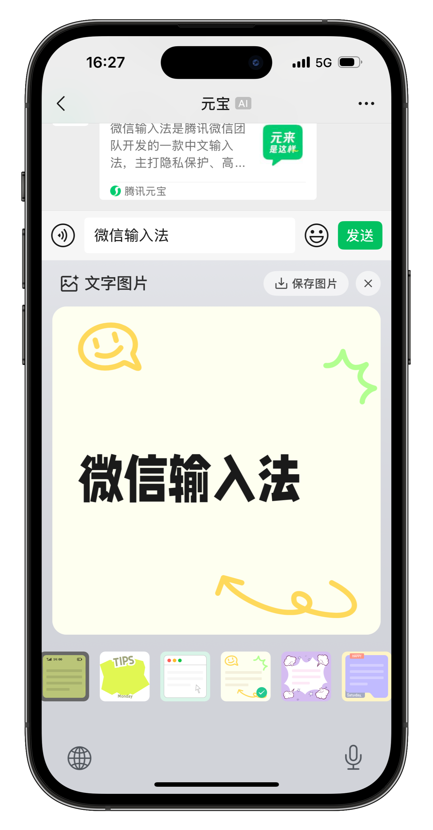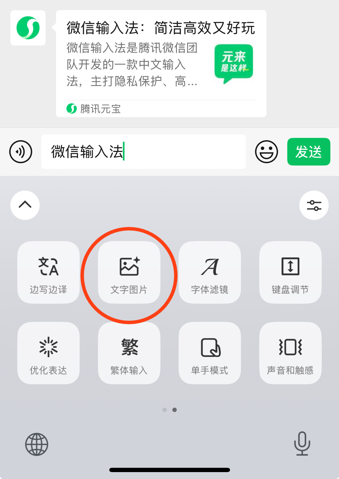 微信输入法支持文字转图片