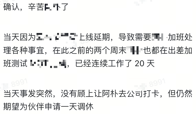 然后她上周末没去公司但也加班了,昨天找 HRBP 说要给她申请调休,HRBP 居然拒绝我,于是走特殊申请,给 COO 发邮件,必须给她把调休加上。